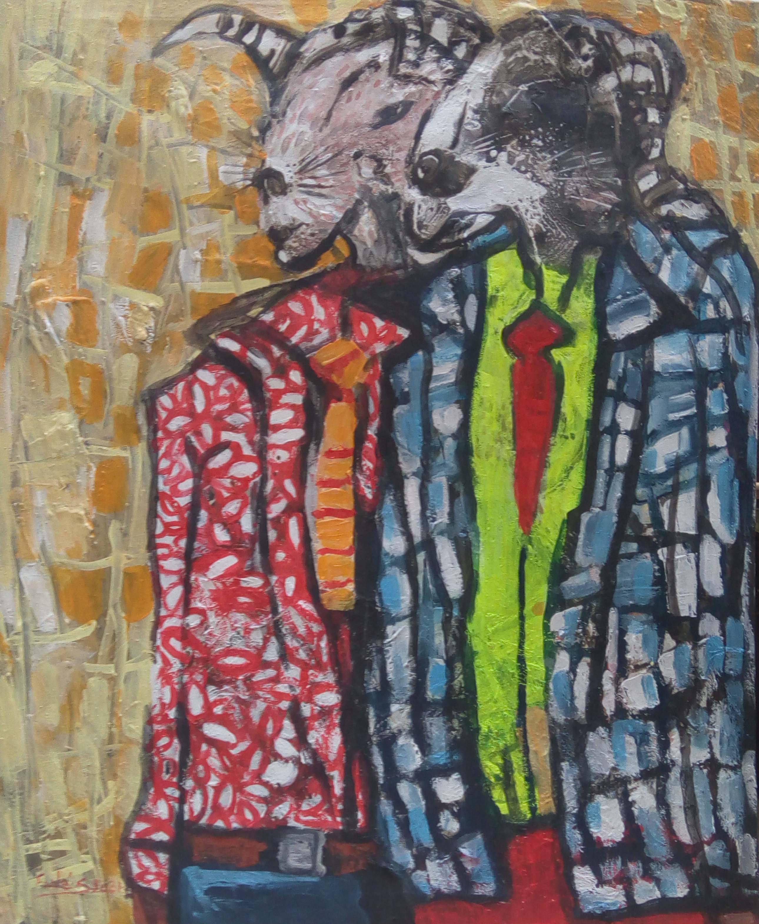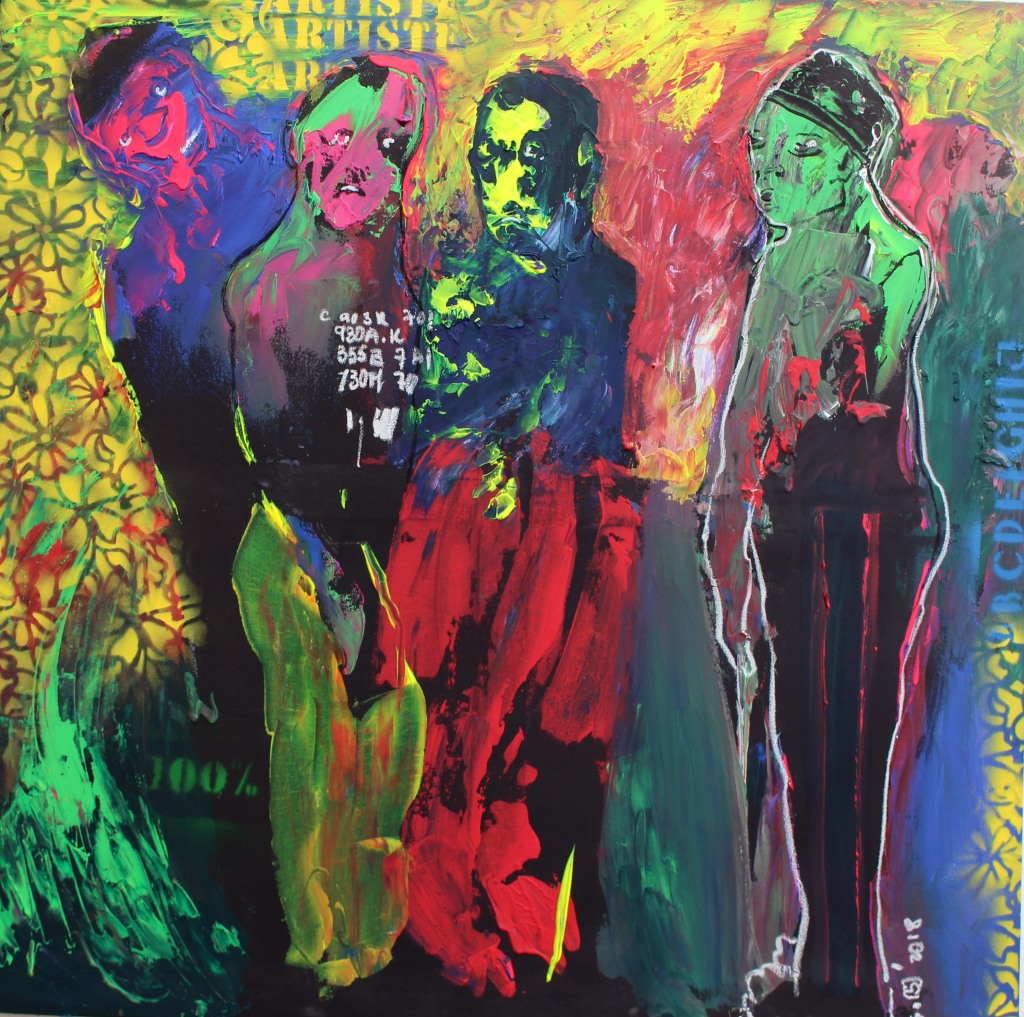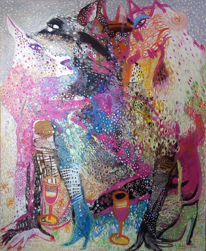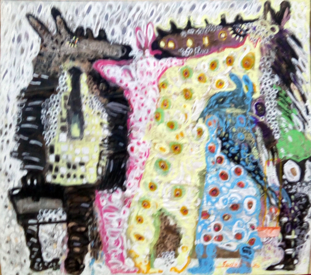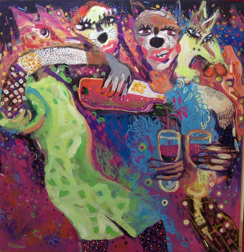 Ces dernières peintures en date sont humoristiques et représentent des personnages délirants s’adonnant à des fêtes burlesques.