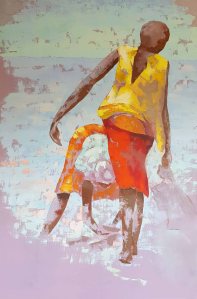 « Le soleil omniprésent, les scènes de la vie quotidienne, la pêche, l’élégance des femmes, l’agitation permanente exacerbent toujours ma sensibilité. De ces scènes, je garde des impressions. J’essaie de les restituer sur ma toile où la couleur témoigne de l’aspect positif de ce pays en devenir.»
