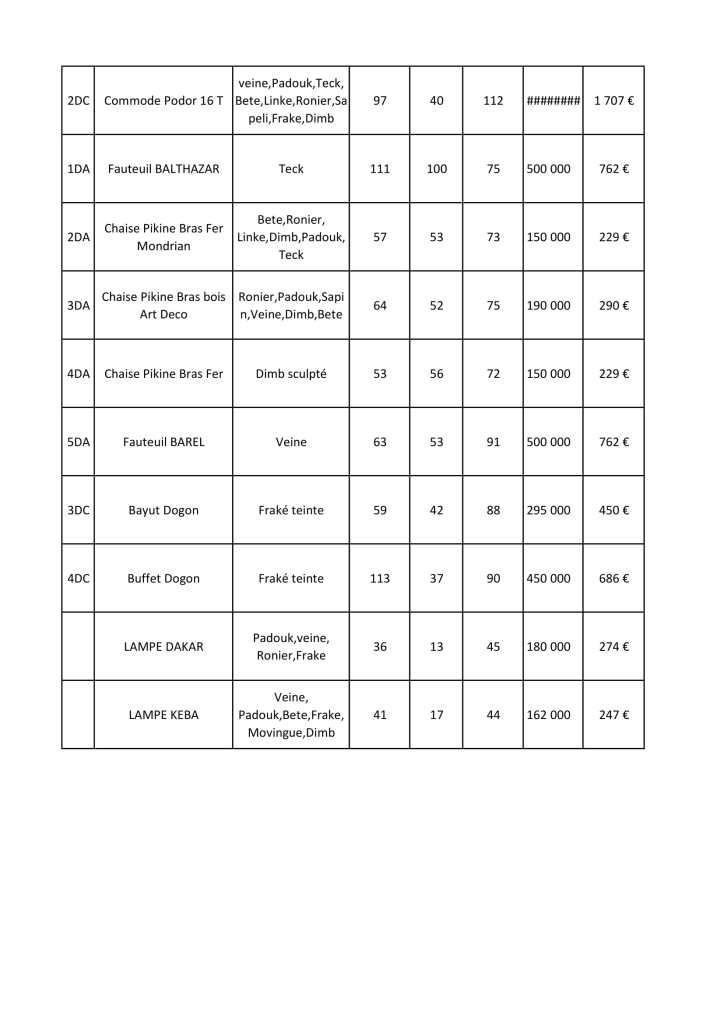 LISTE DE PRIX DES MEUBLES TABLE BAOULE EN SAPELI . H 40 X 120 X 120 : 900 000 FCFA / 1375 EUROS (remise 30% sur prix affiché Partager : Cliquez pour partager sur WhatsApp(ouvre dans une nouvelle fenêtre) WhatsApp J’aime chargement…