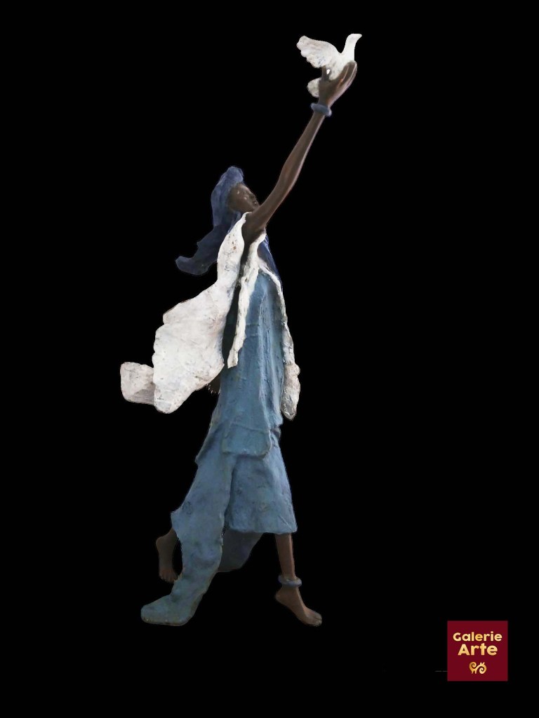 AGandéma est un des plus grands artistes bronziers du Burkina Faso. Ses statues reflétent la grâce féminine africaine dans toute sa splendeur. Les bronzes sont réalisées par la traditionnelle méthode de la cire perdue, ce qui fait de chaque pièce, une pièce unique.