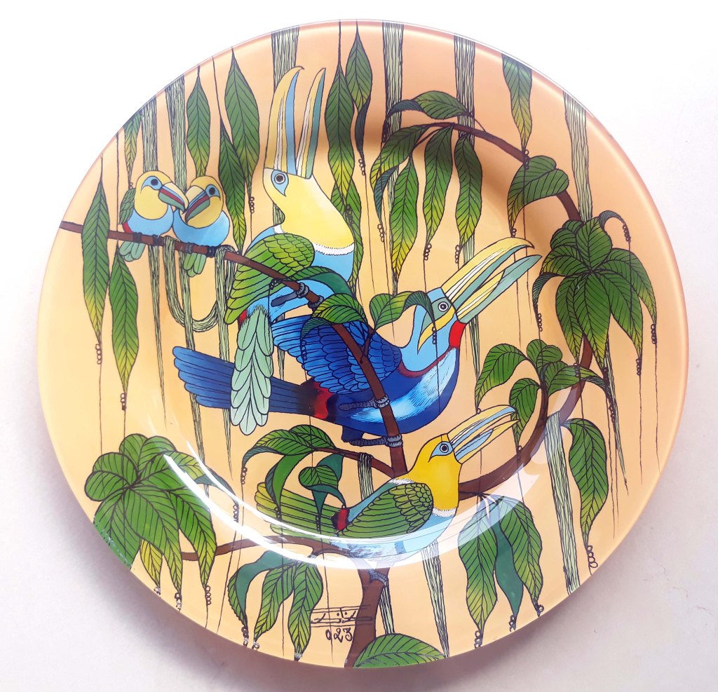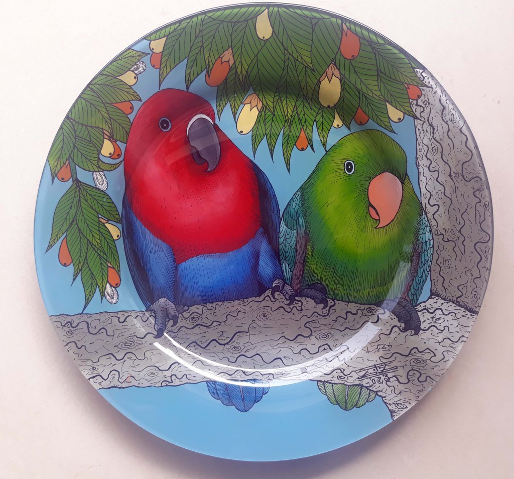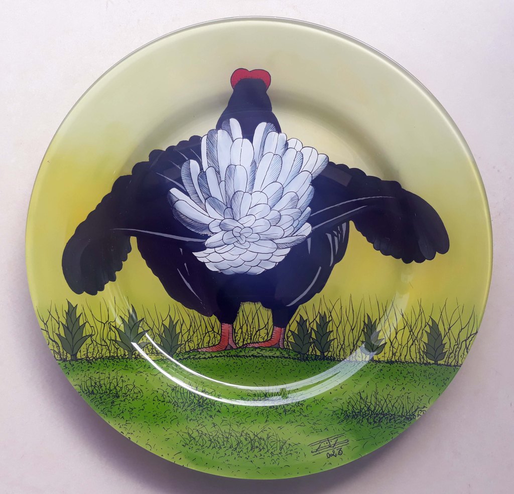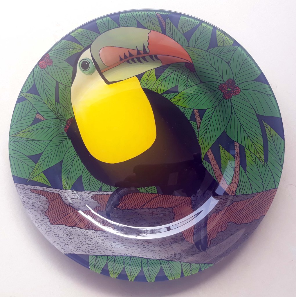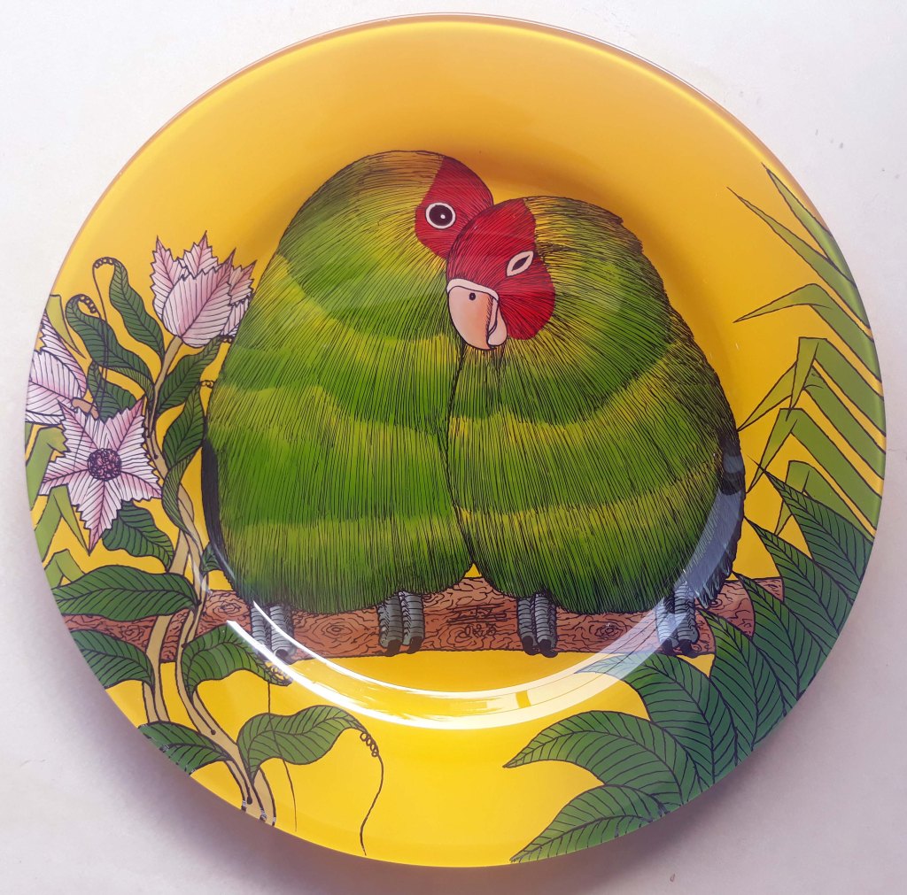 Elles sont peintes sur le verso, comme la technique du sous-verre l’exige, et par conséquent, le recto est exempt de peinture ou de produit similaire ce qui permet tout contact avec les aliments. Les assiettes peuvent donc être utilisées pour un service de table, quotidiennement, ou pour la décoration. (lavage à la main et pas de micro onde).