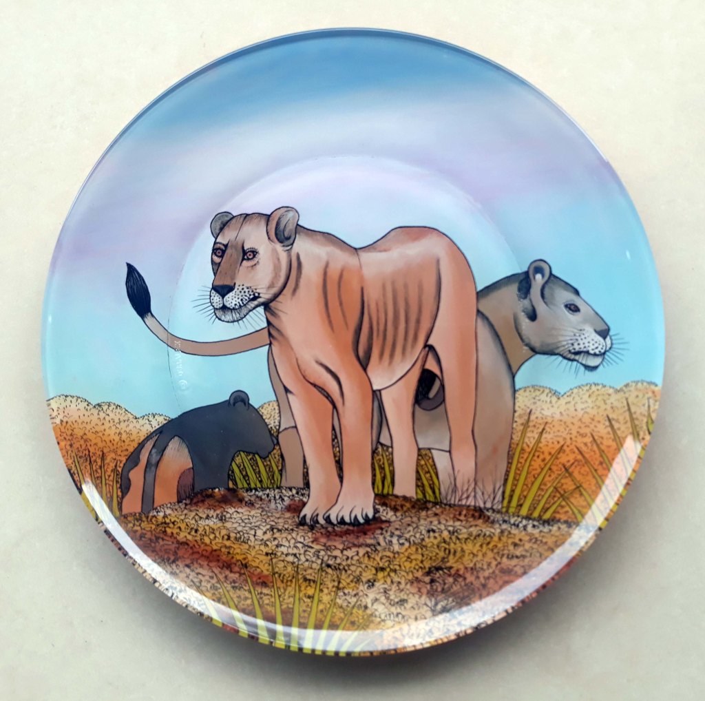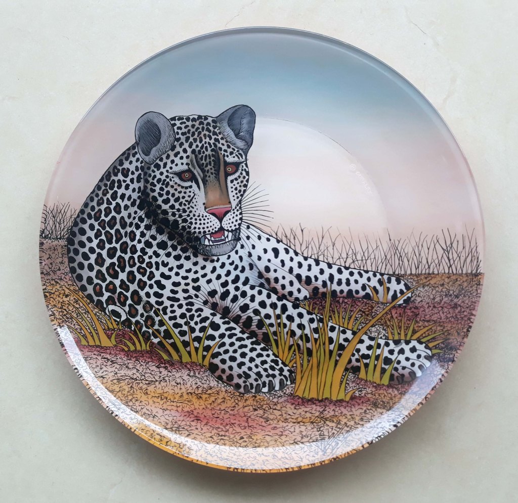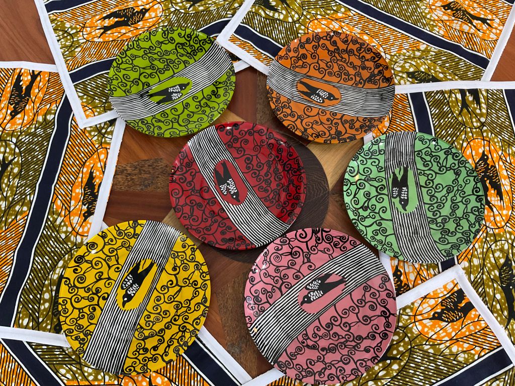 Ces assiettes en verre ont été peintes minutieusement par des artistes sénégalais, une par une, à la main, suivant la tradition. La peinture sous-verre est un art populaire au Sénégal, encré depuis le 19 ème siècle.