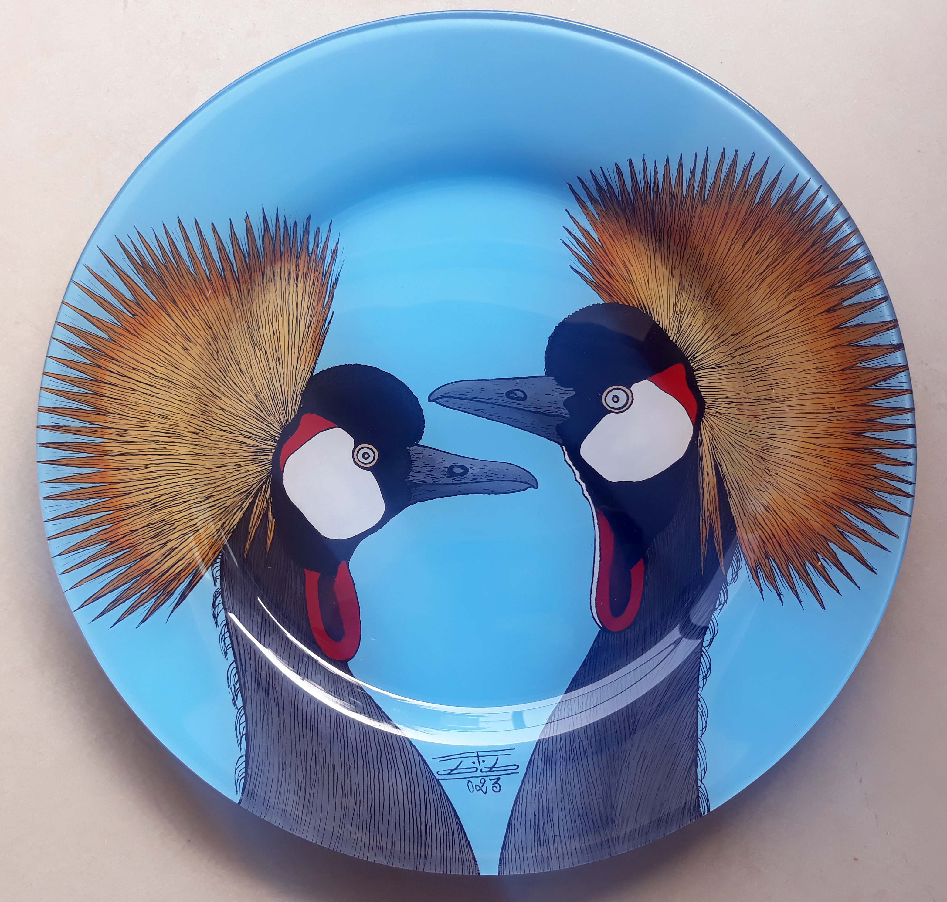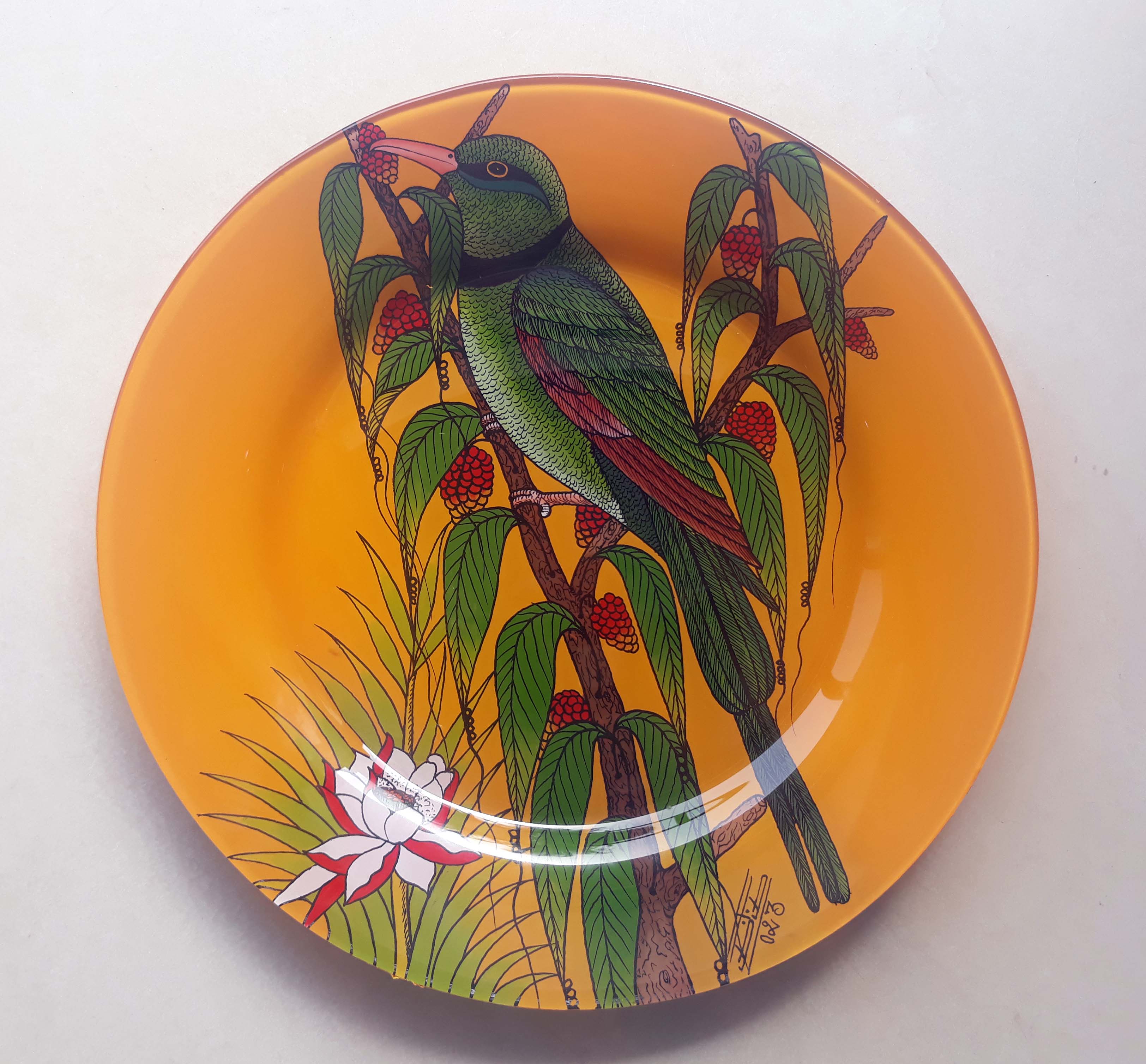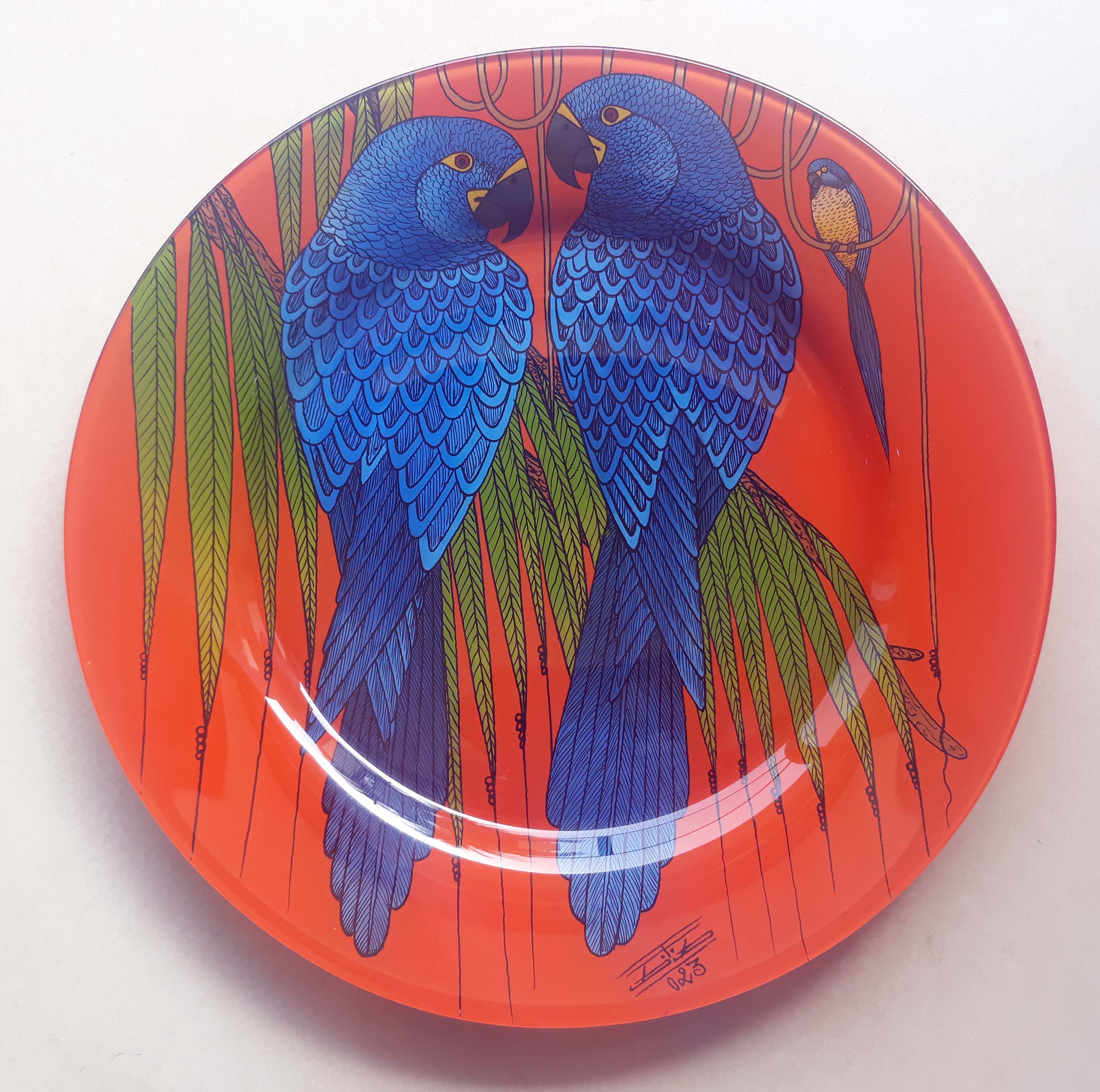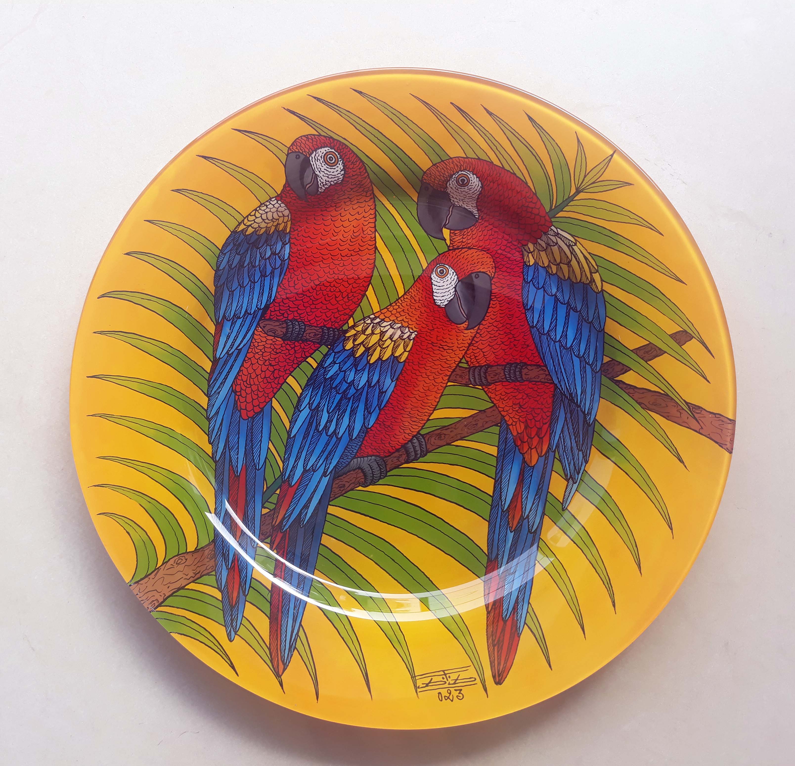Elles sont peintes sur le verso, comme la technique du sous-verre l’exige, et par conséquent, le recto est exempt de peinture ou de produit similaire ce qui permet tout contact avec les aliments. Les assiettes peuvent donc être utilisées pour un service de table, quotidiennement, ou pour la décoration. (lavage à la main et pas de micro onde).