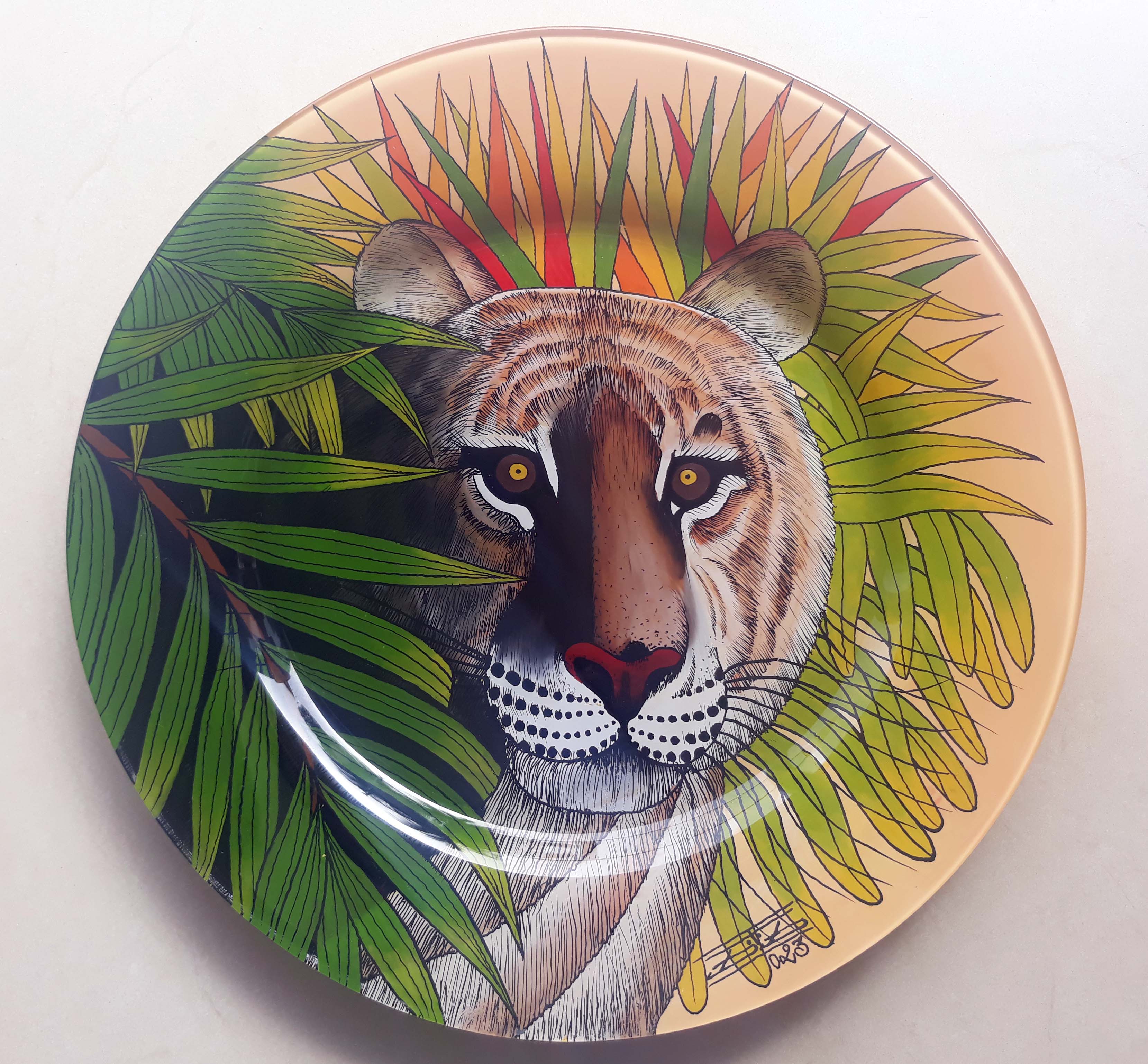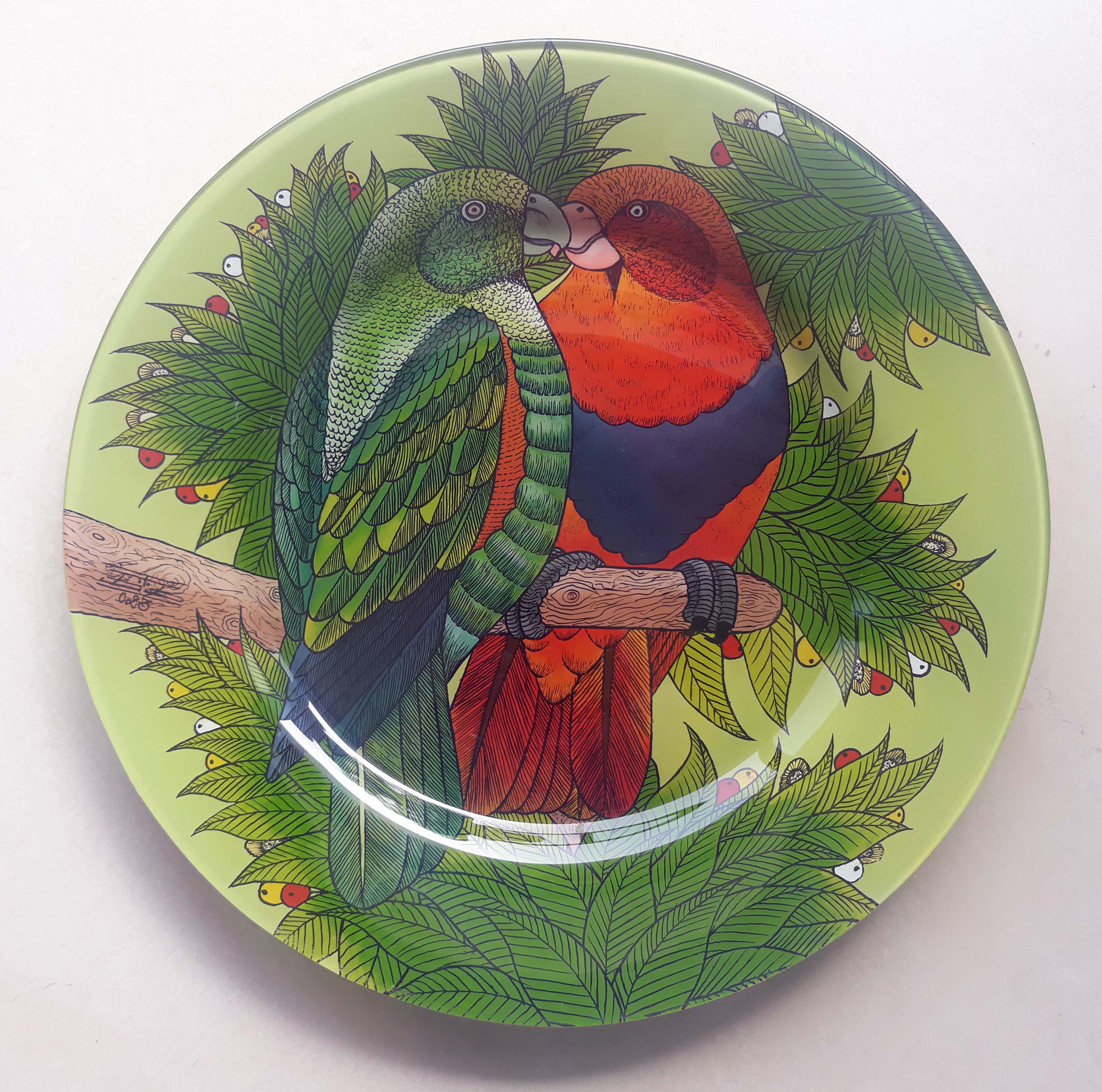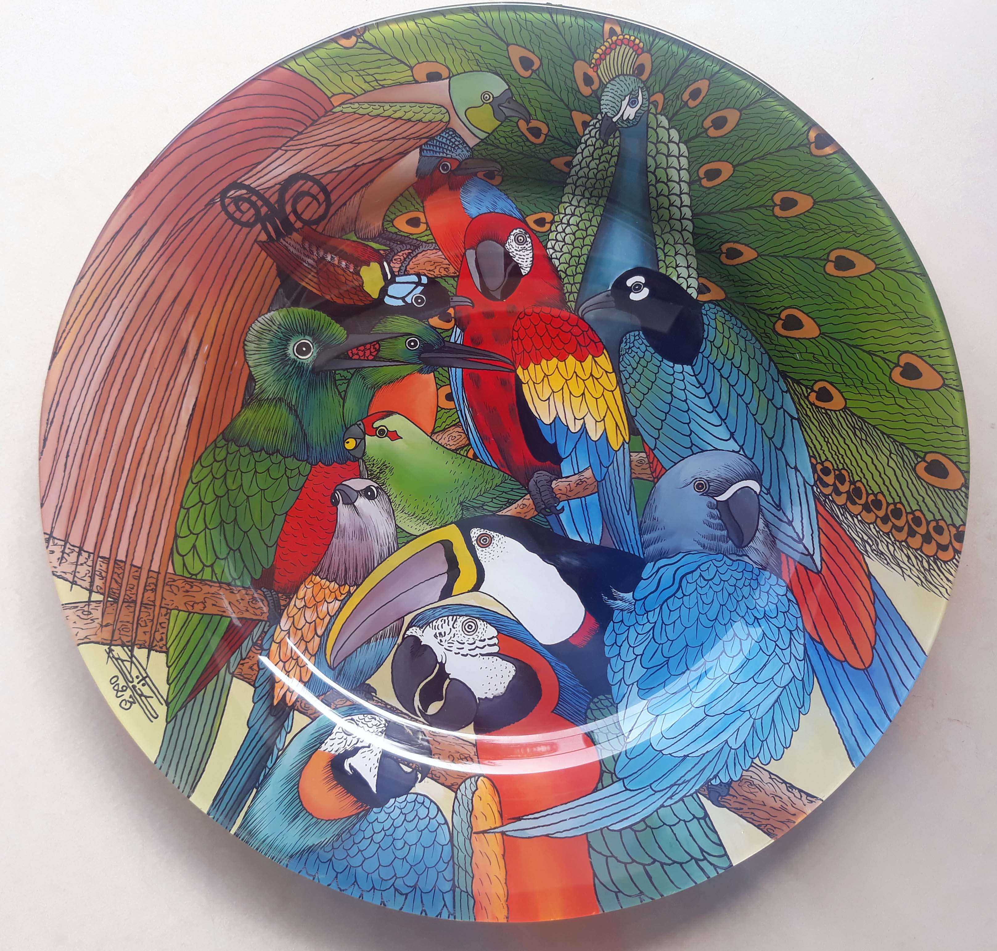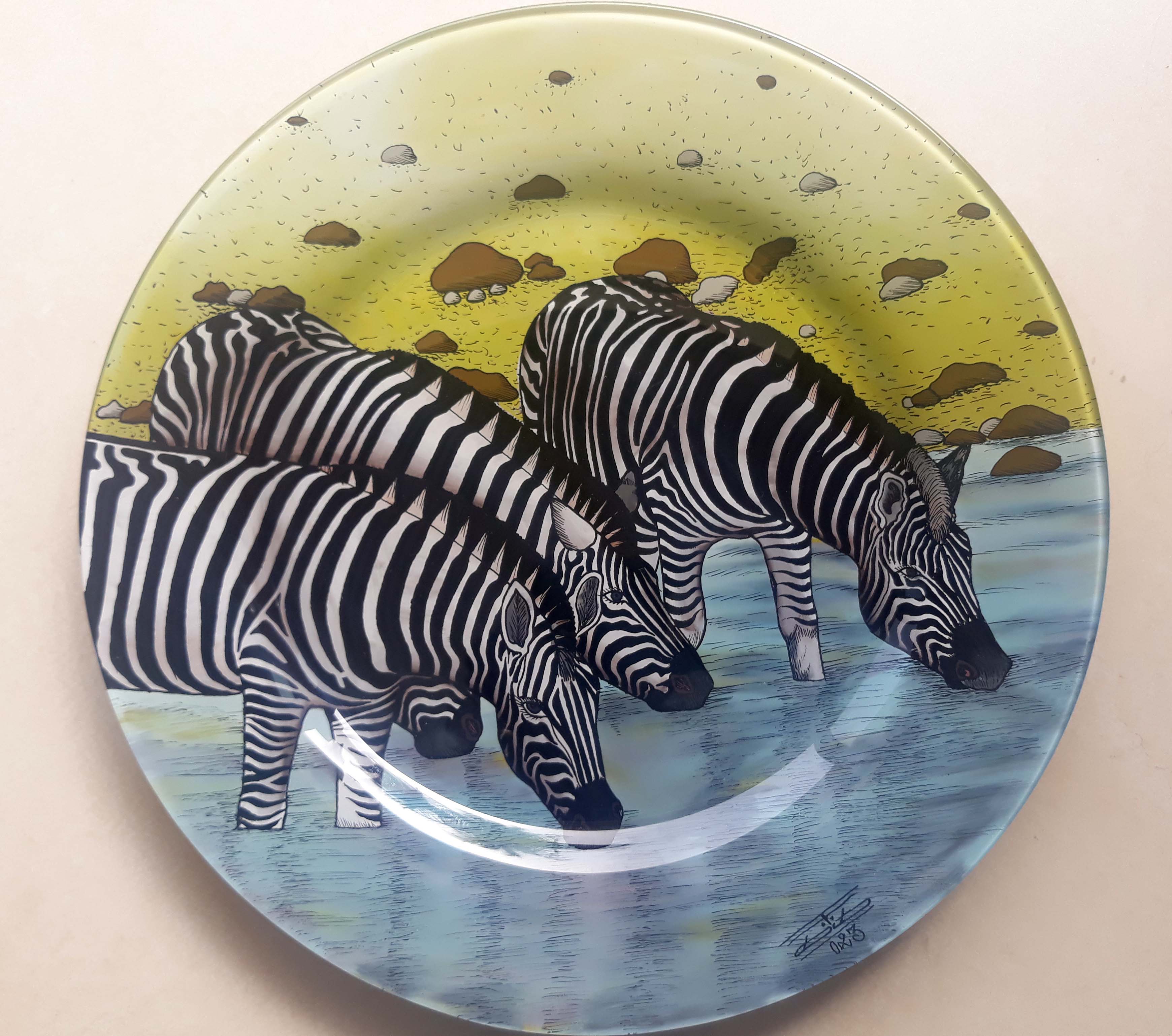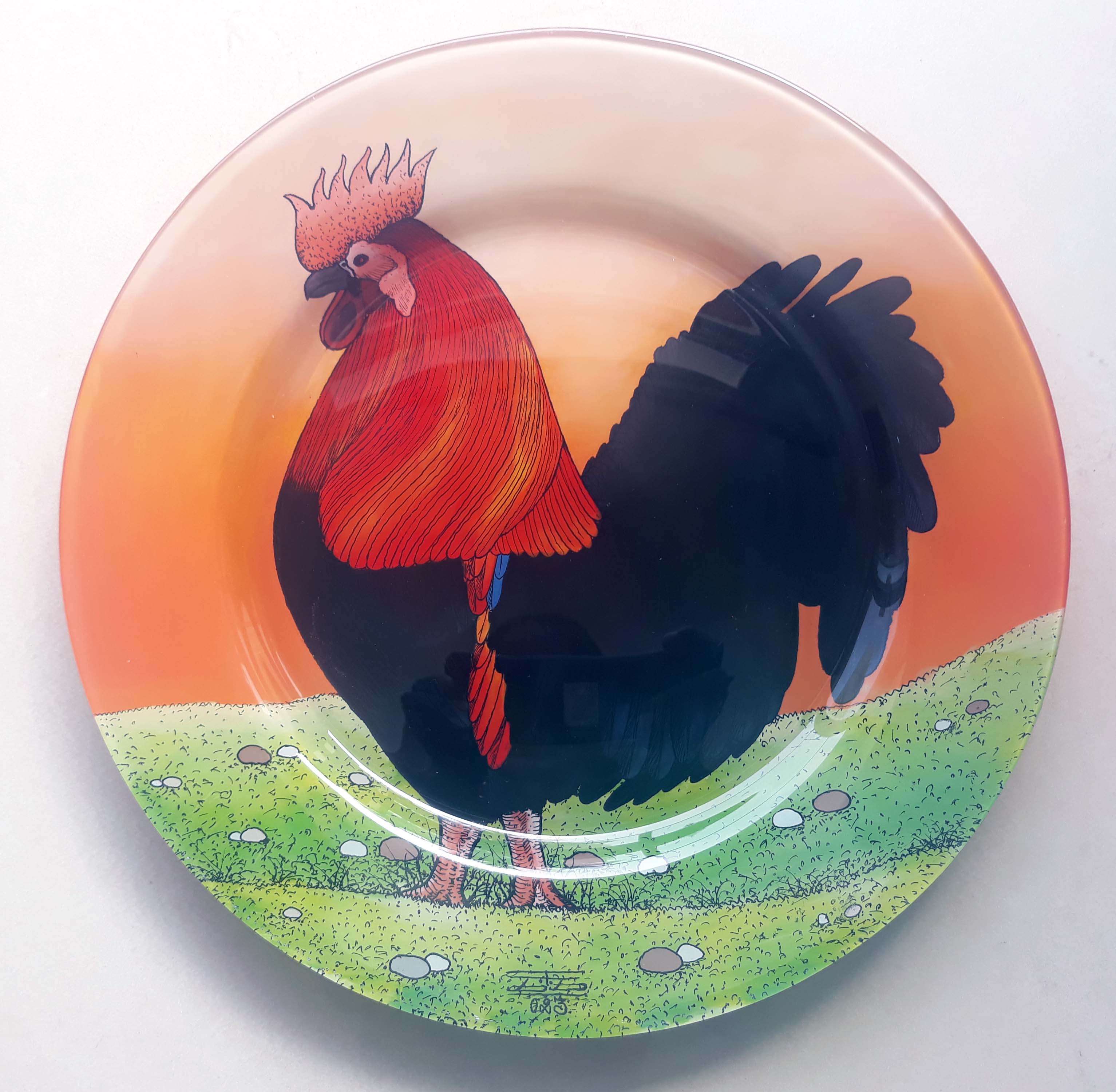 Elles sont peintes sur le verso, comme la technique du sous-verre l’exige, et par conséquent, le recto est exempt de peinture ou de produit similaire ce qui permet tout contact avec les aliments. Les assiettes peuvent donc être utilisées pour un service de table, quotidiennement, ou pour la décoration. (lavage à la main et pas de micro onde).
