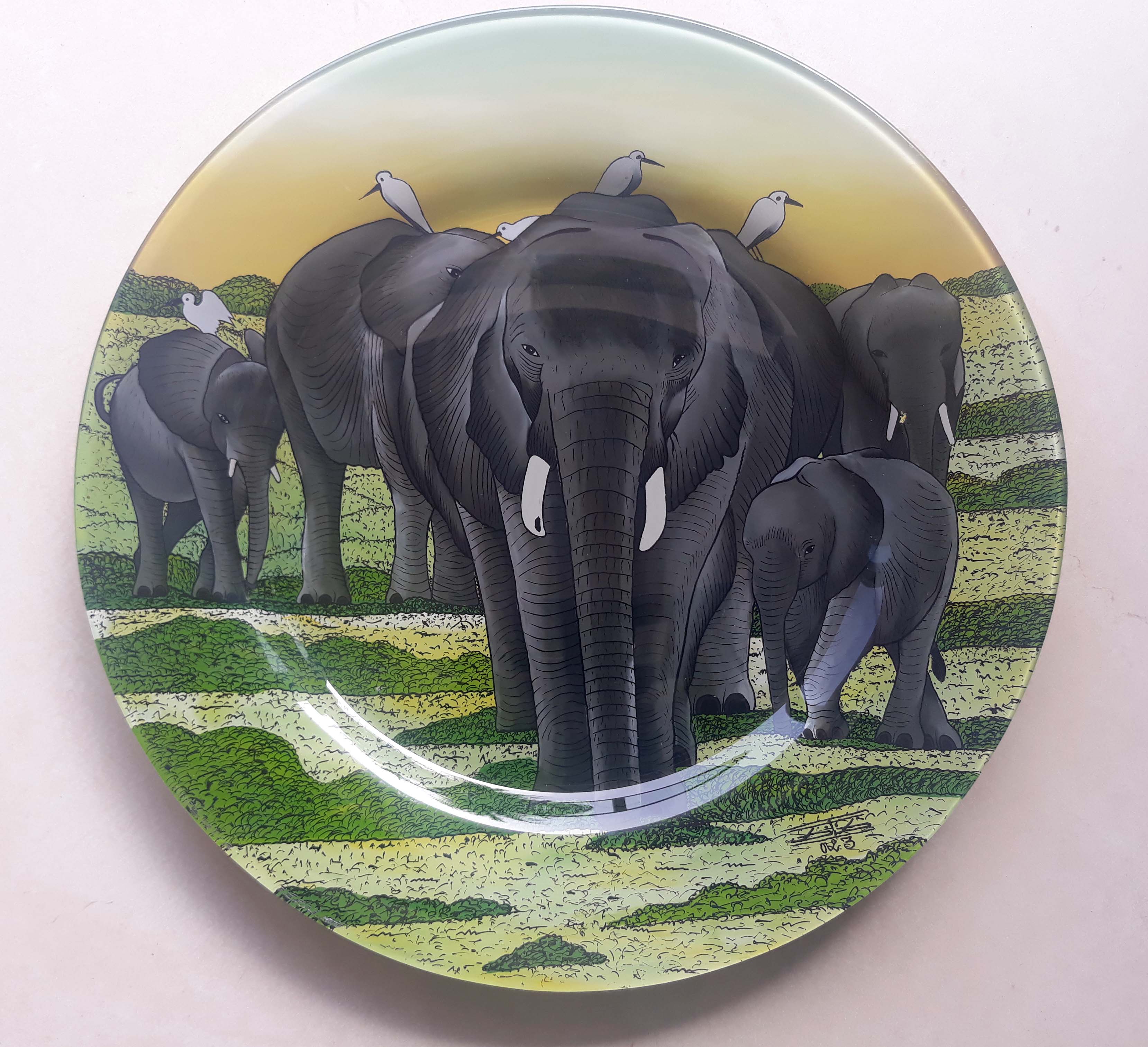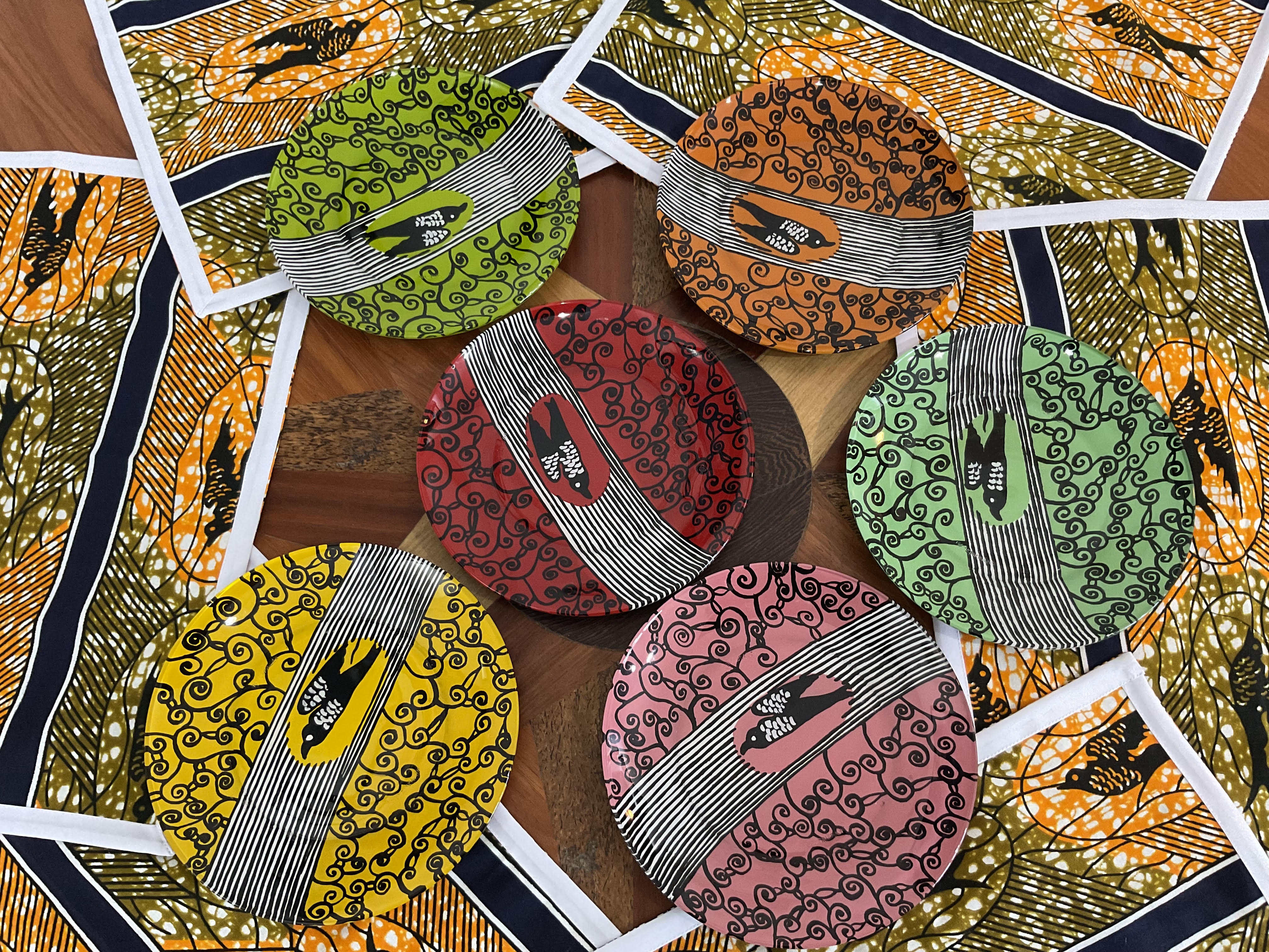 Ces assiettes en verre ont été peintes minutieusement par des artistes sénégalais, une par une, à la main, suivant la tradition. La peinture sous-verre est un art populaire au Sénégal, encré depuis le 19 ème siècle.