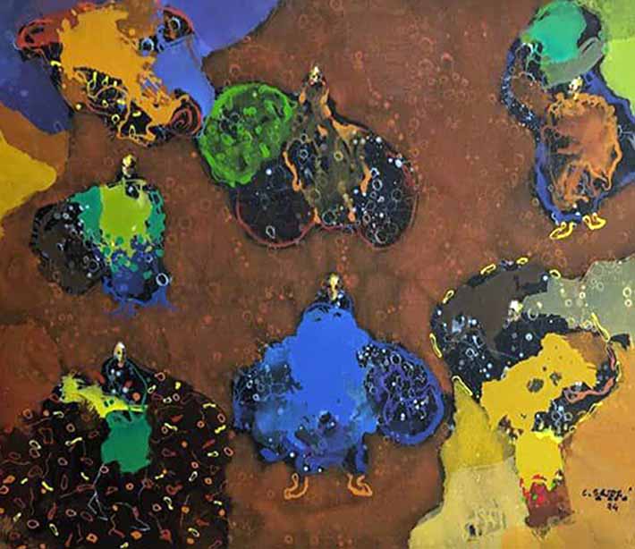L’artiste nous propose ici une série d’encres sur papier et des tableaux sur toile.