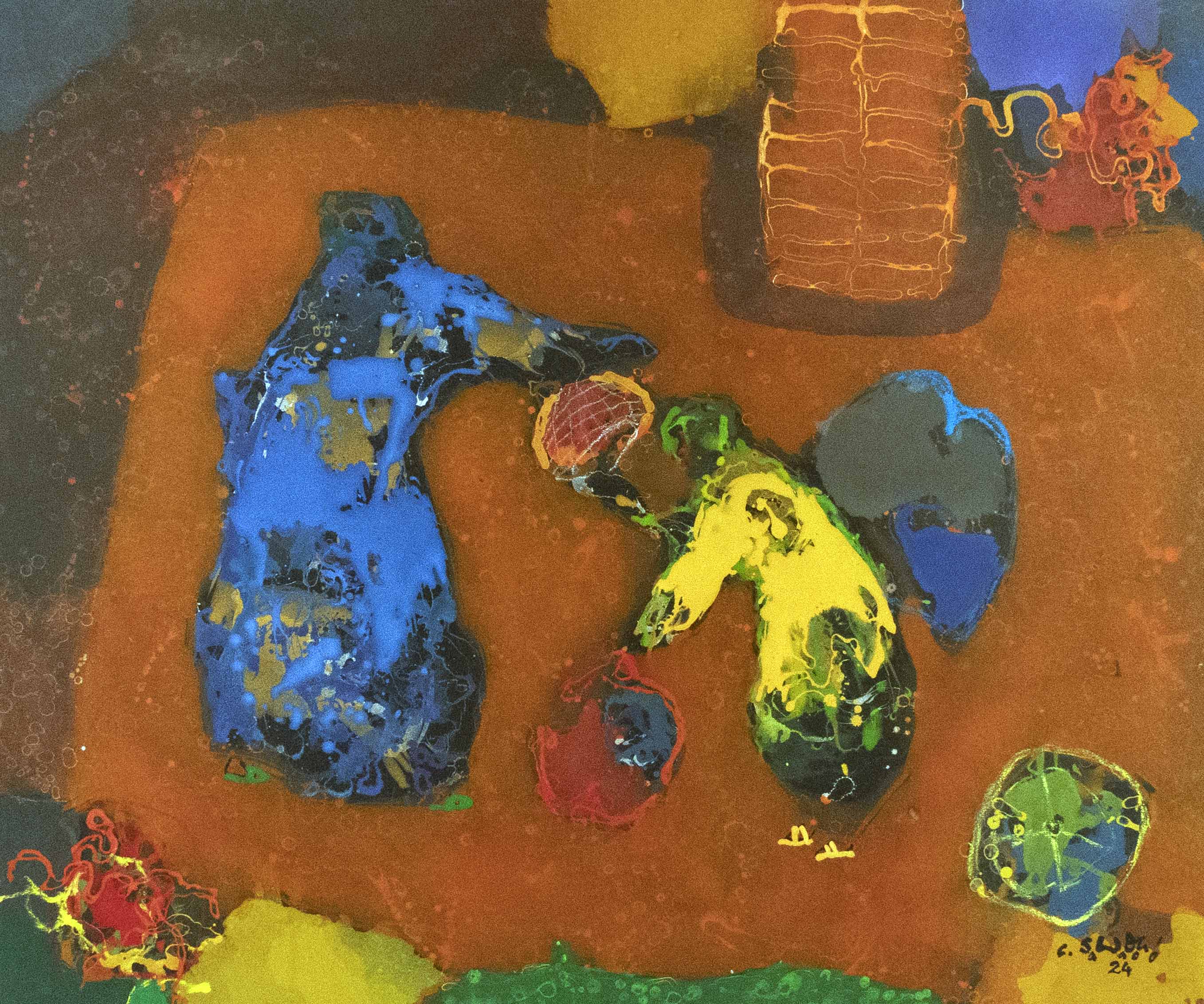 L’artiste nous propose ici une série d’encres sur papier et des tableaux sur toile.