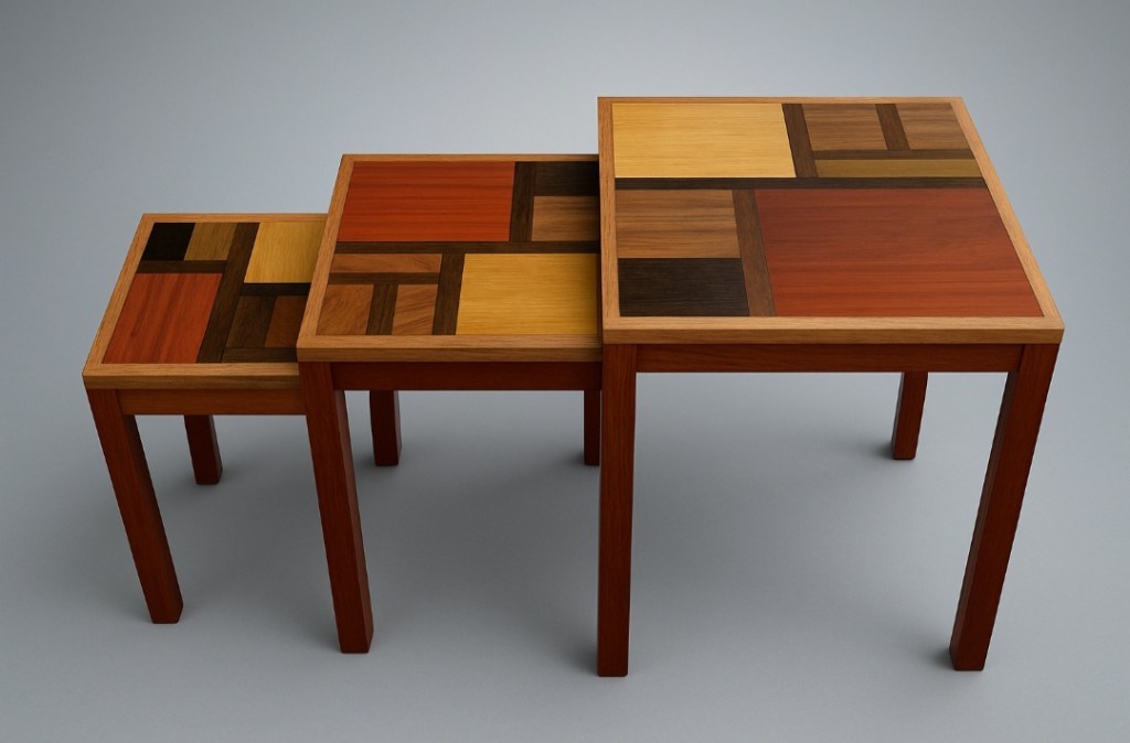 • Contemporaine : lignes épurées, assemblages de bois nobles, motifs géométriques, poignées forgées à la main en fer ou bronze (cire perdue).