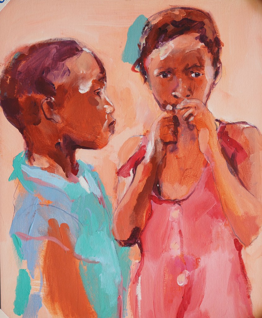 discussions, capturées par la photographie. À partir de ces rencontres, elle peint les histoires et