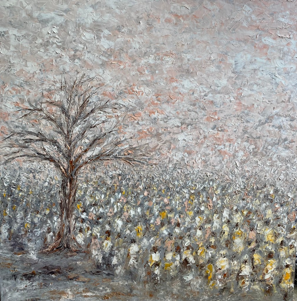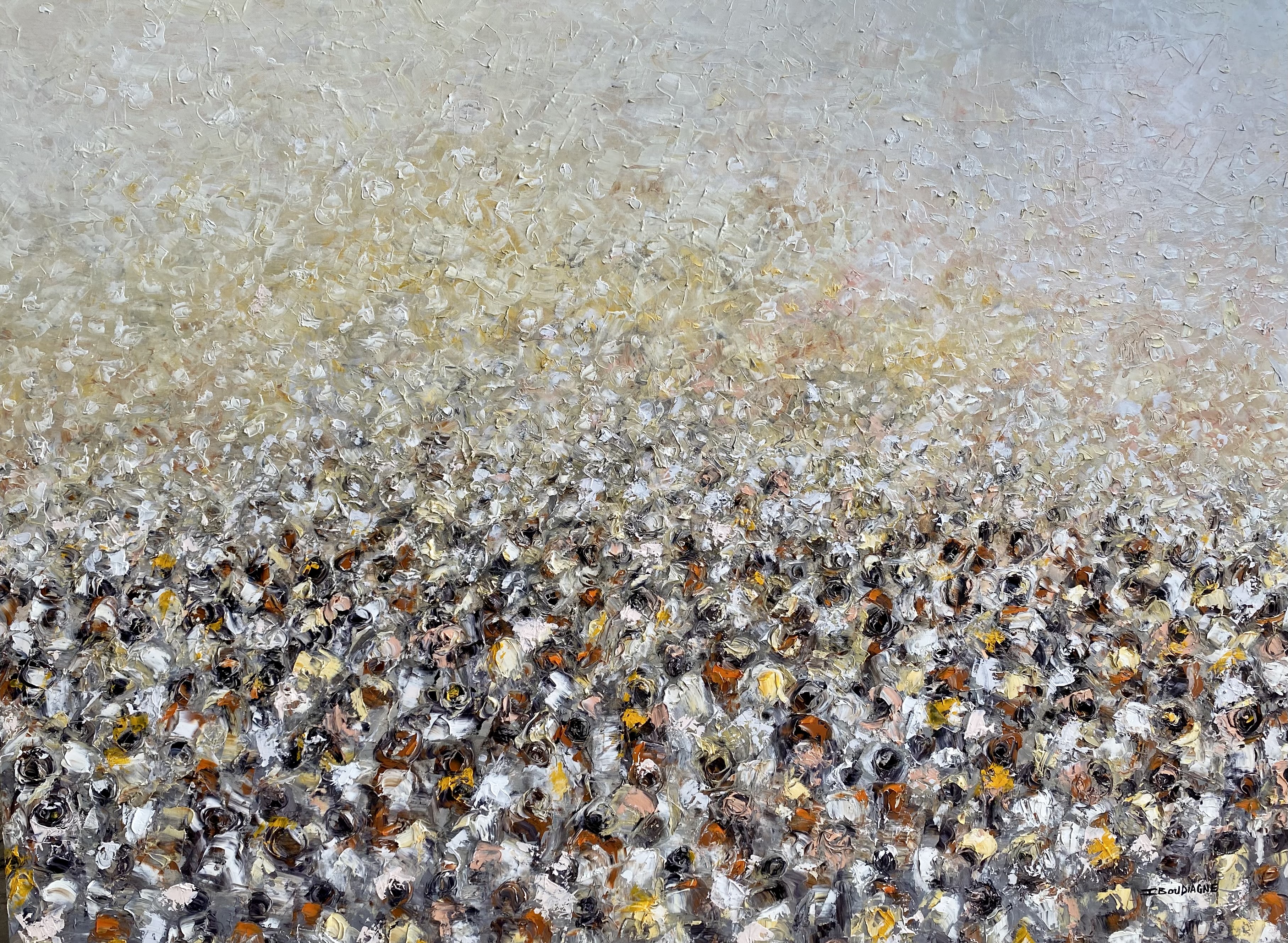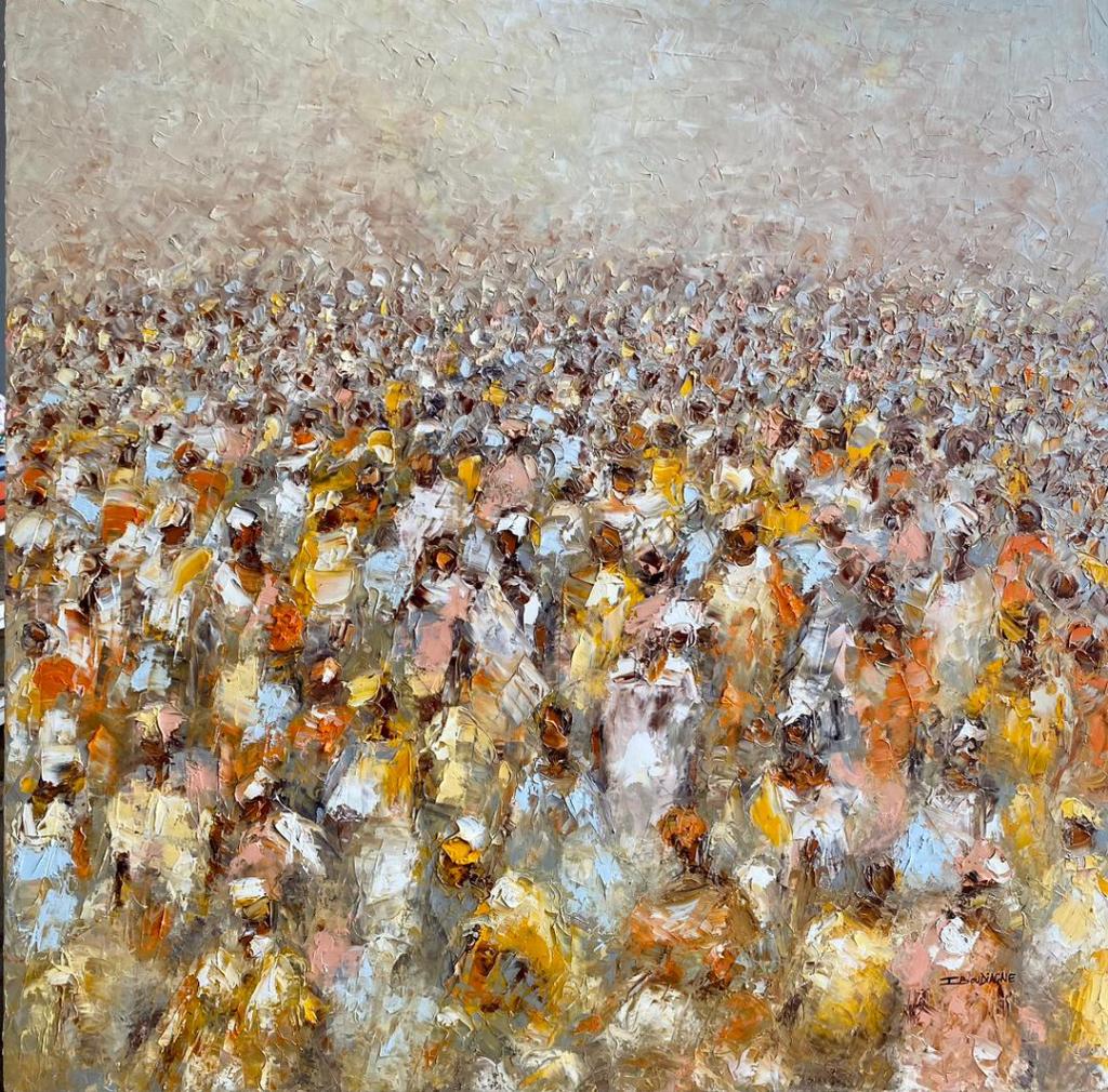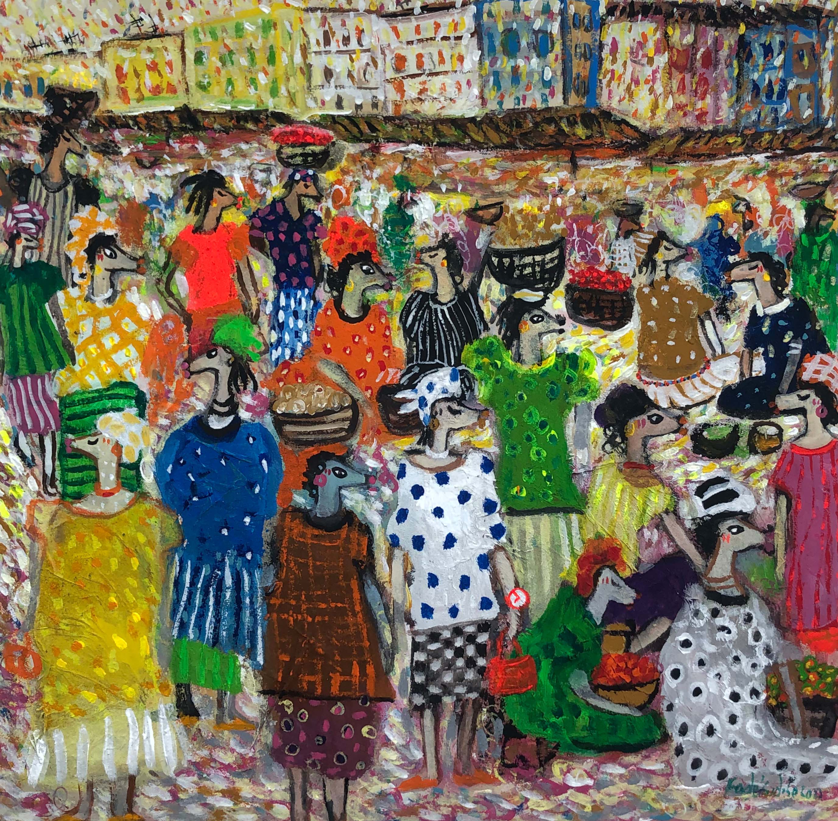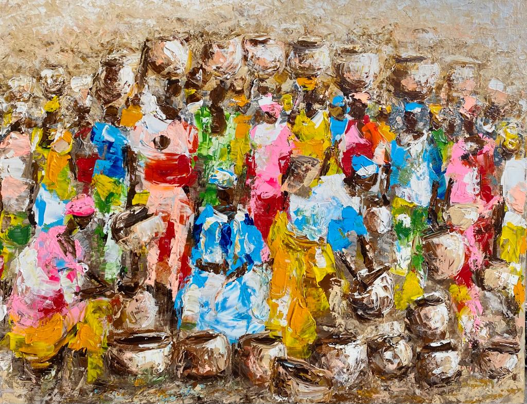 A travers sa démarche artistique, il porte un regard toujours bienveillant sur la société. De ses touches de couleurs chatoyantes inspirées par les grands maîtres de l’impressionnisme, il représente la foule et magnifie le travail des femmes au marché, aux champs.