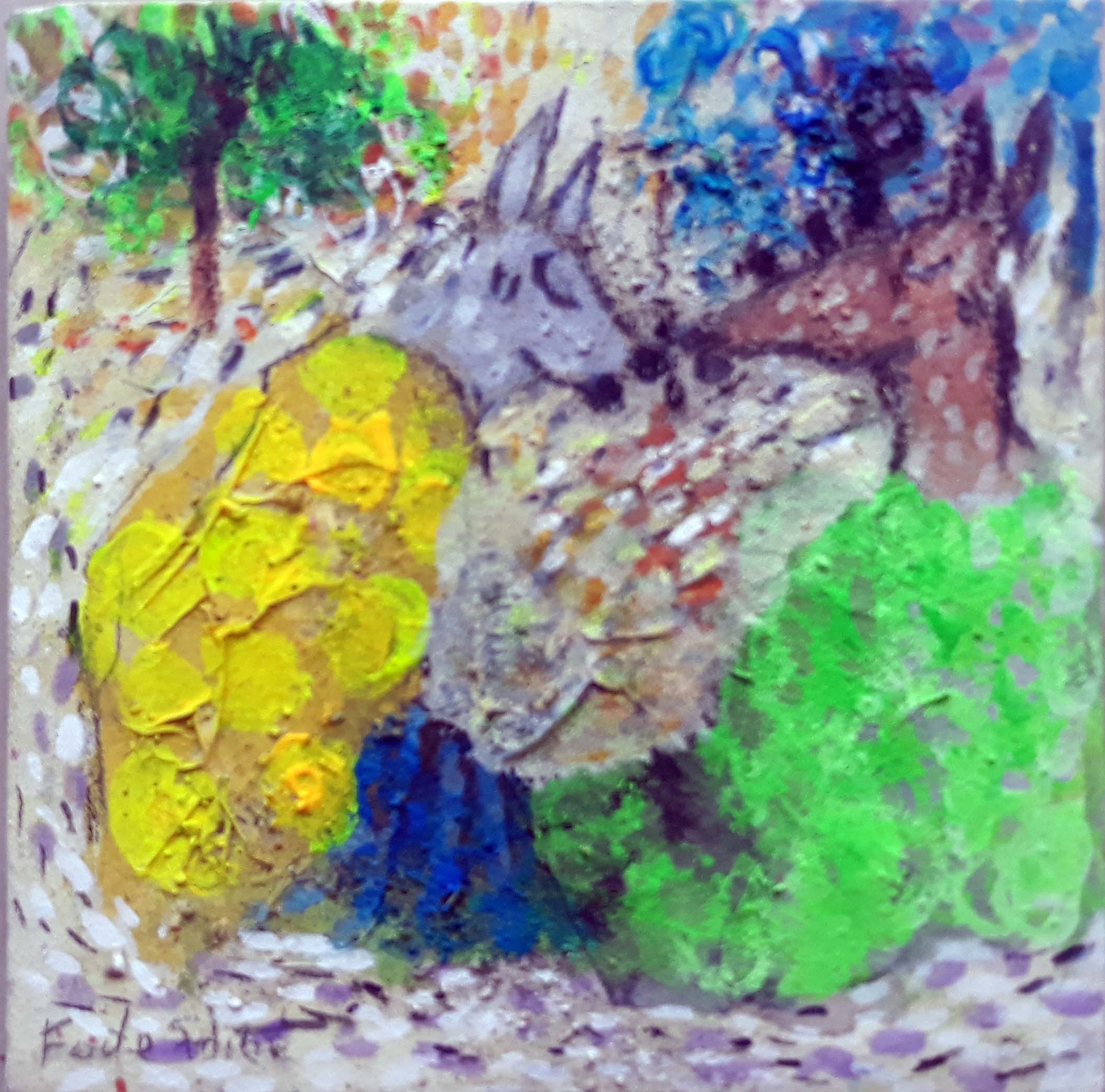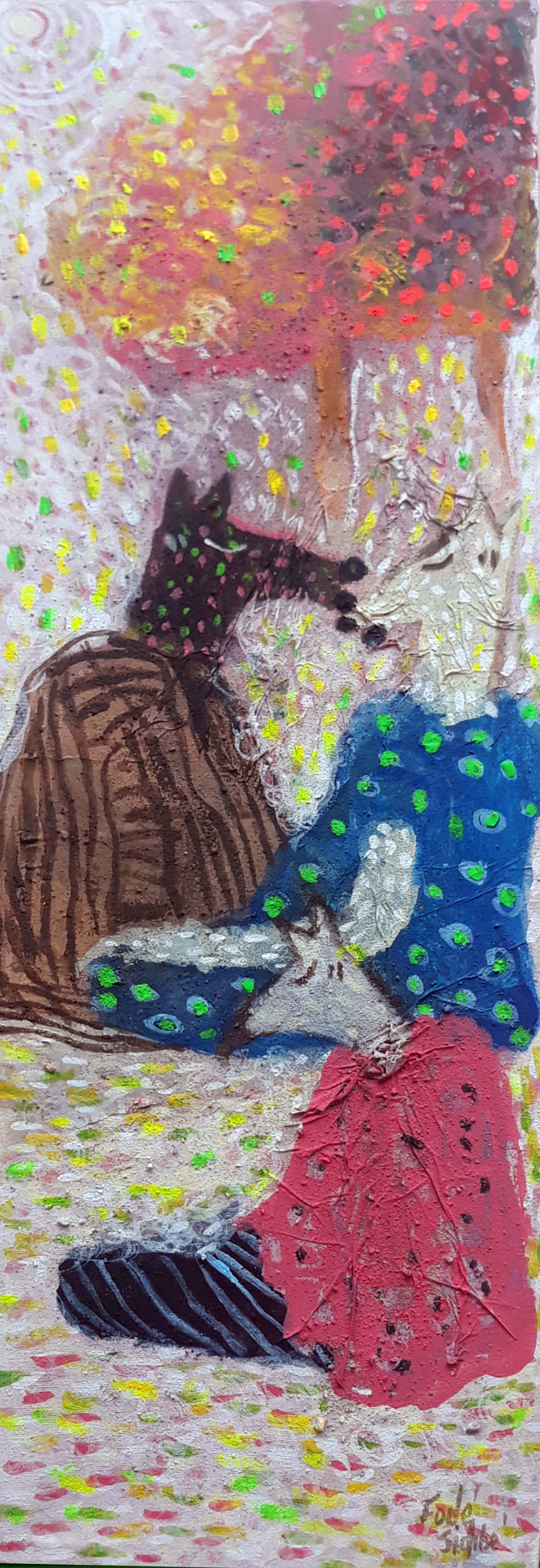 Artiste casamançais de 46 ans, Fodé SIDIBE est un peintre autodidacte. C’est à l’âge de 7 ans qu’il a commencé à dessiner, nourri par le monde imaginaire des contes de l’écrivain sénégalais Birago Diop. Dès lors, il ne s’est plus arrêté et s’est tourné vers la peinture, encadré par ses professeurs du lycée. Il a ensuite pratiqué la peinture dans des ateliers d’artistes sénégalais reconnus.
