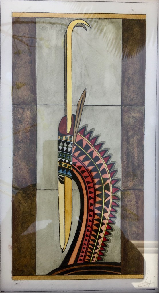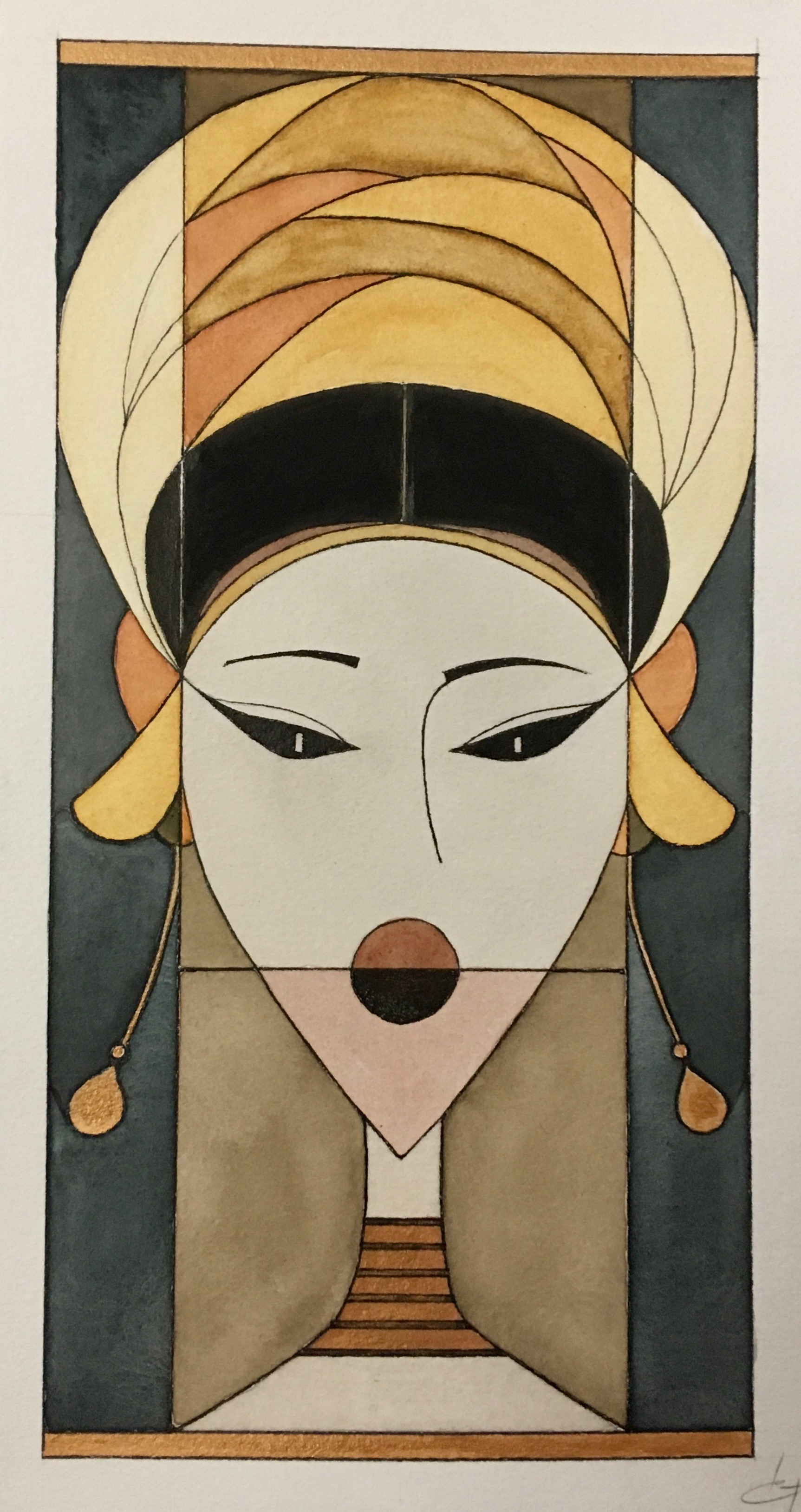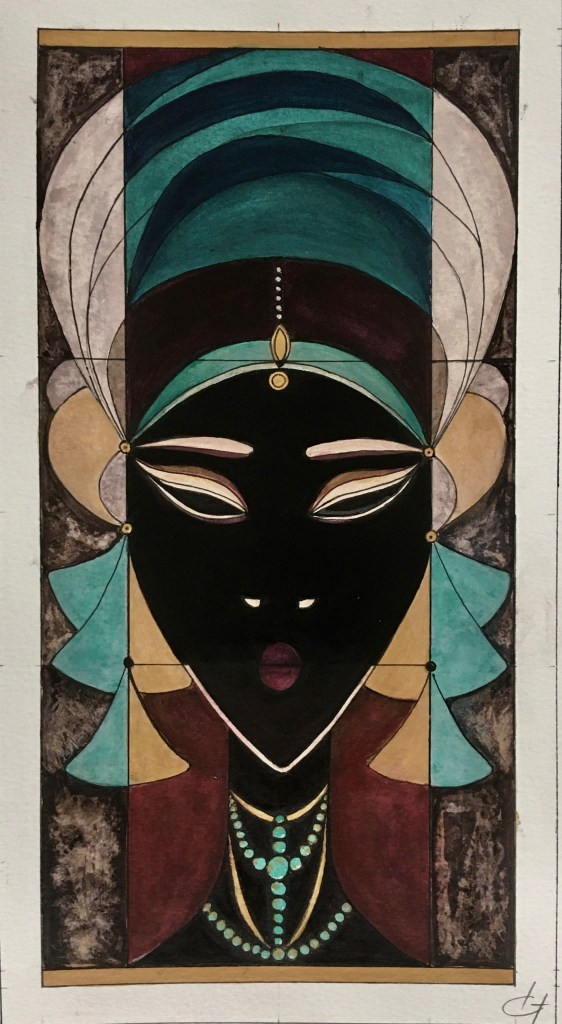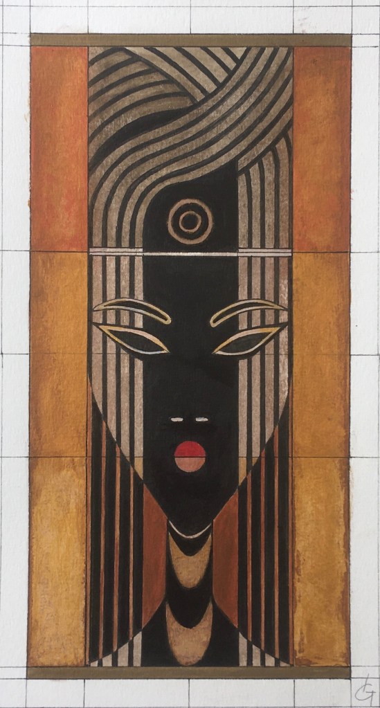 Les peintures de Geneviève nous font penser au style Art déco de par la simplification des formes, de l’harmonie et la symétrique propre aux années 1920.