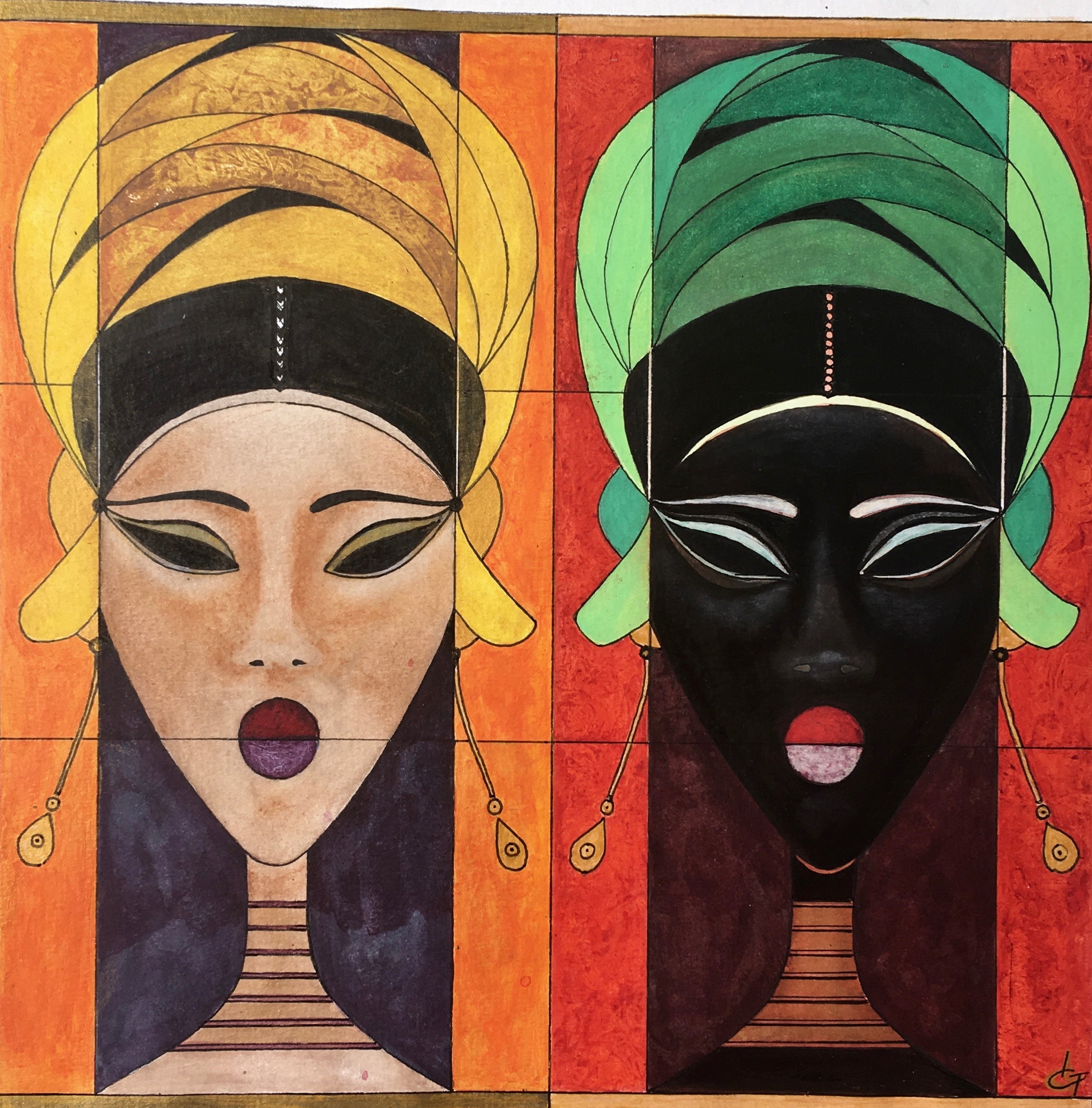 Elle présente ici « Les Afr’Icones » qui sont une collection d’images inspirées des masques africains.