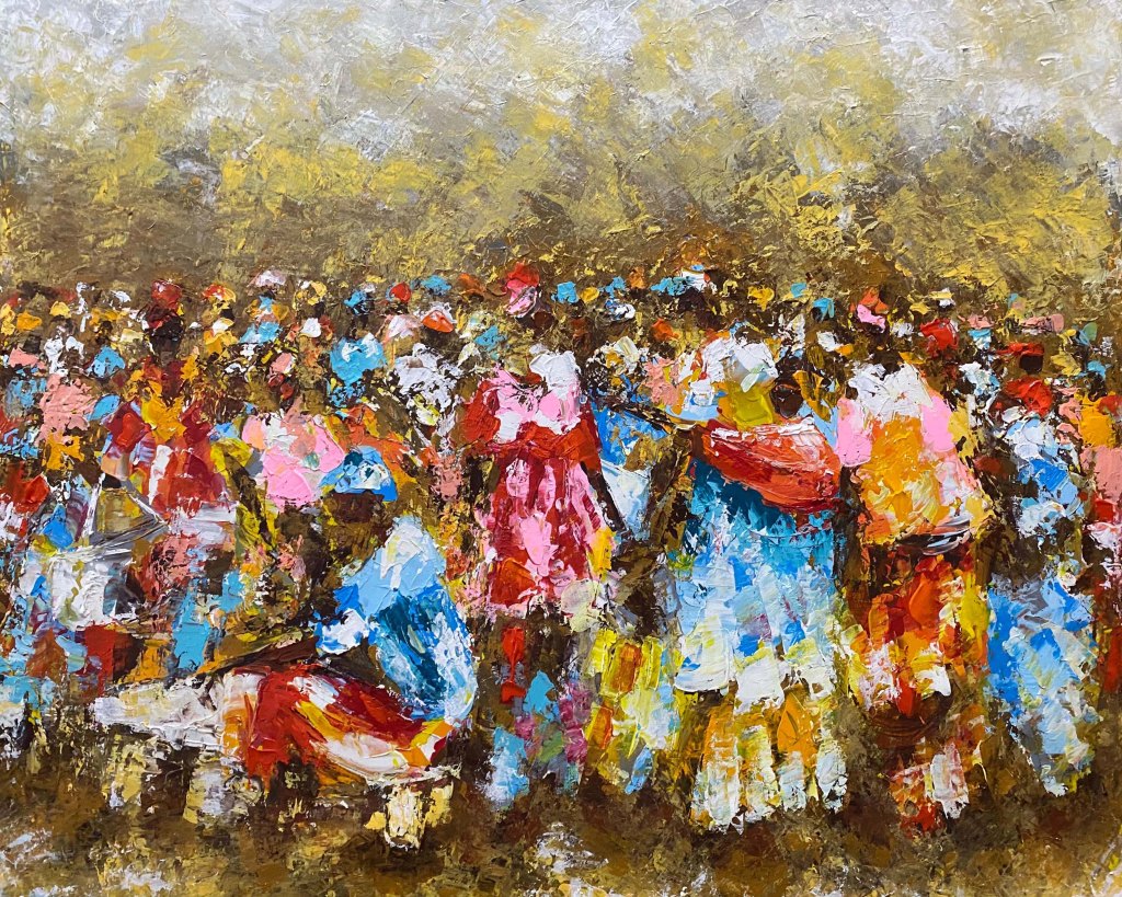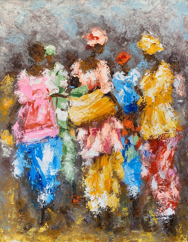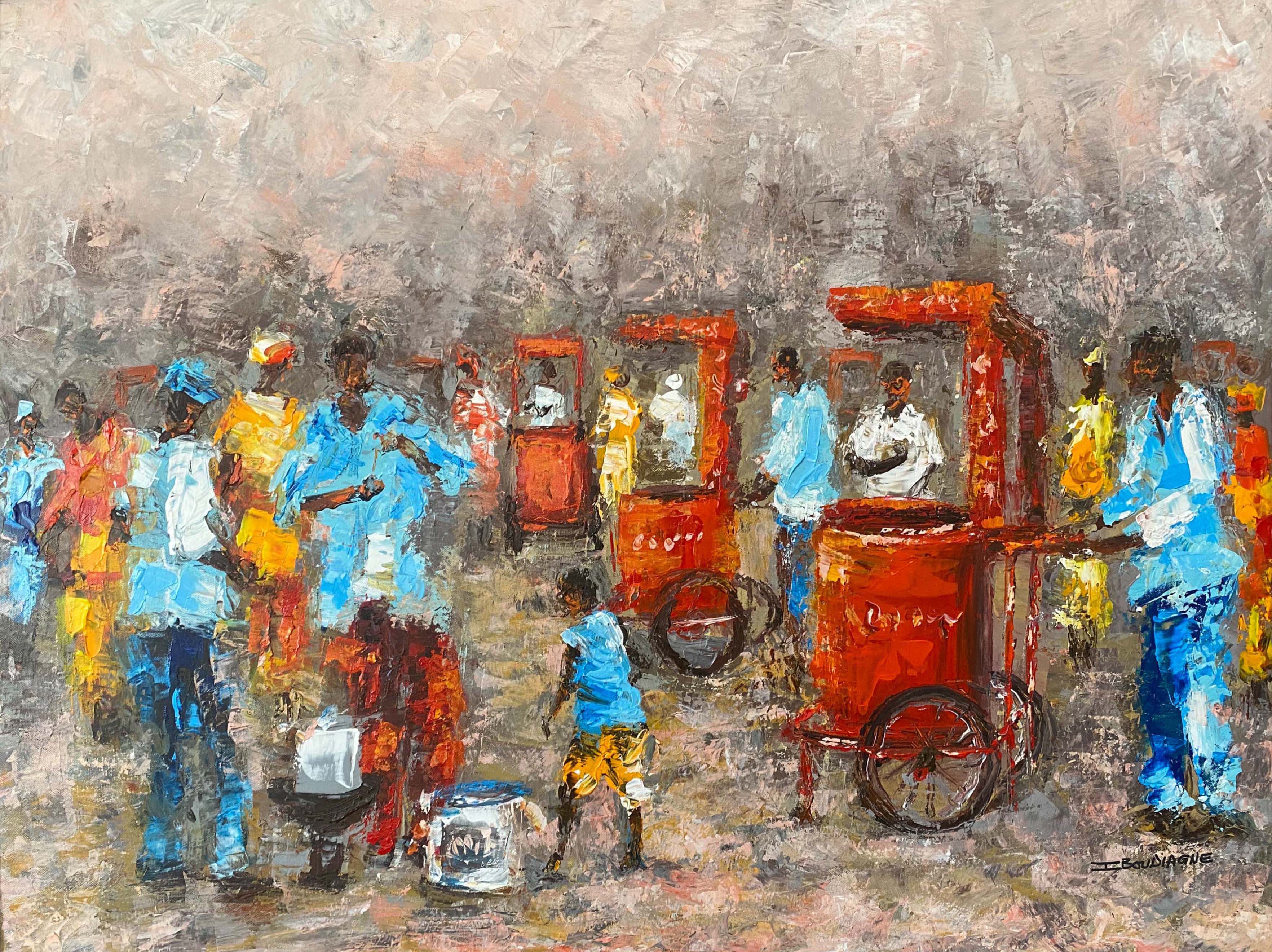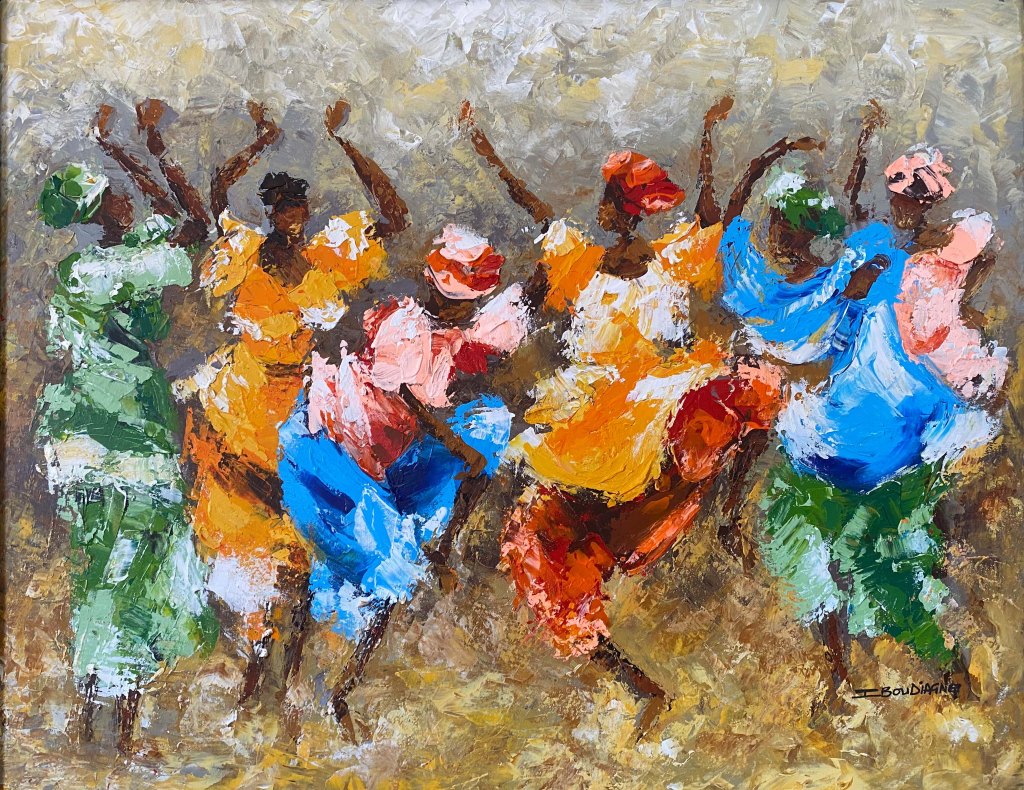 Ibou Diagne, artiste autodidacte né en 1979, a fréquenté l’atelier du professeur plasticien Daouda Ndiaye. Il a exposé pour la première en 2001 au centre culturel Blaise Senghor avant d’enchaîner les expositions à Dakar, à Bondues en France et au Cap-Vert . Il encadre bénévolement des jeunes désireux de s’initier à la peinture ainsi que des personnes en réinsertion sociale à Rufisque. Il aime ainsi transmettre en pleine gratitude ce qu’on lui a transmis