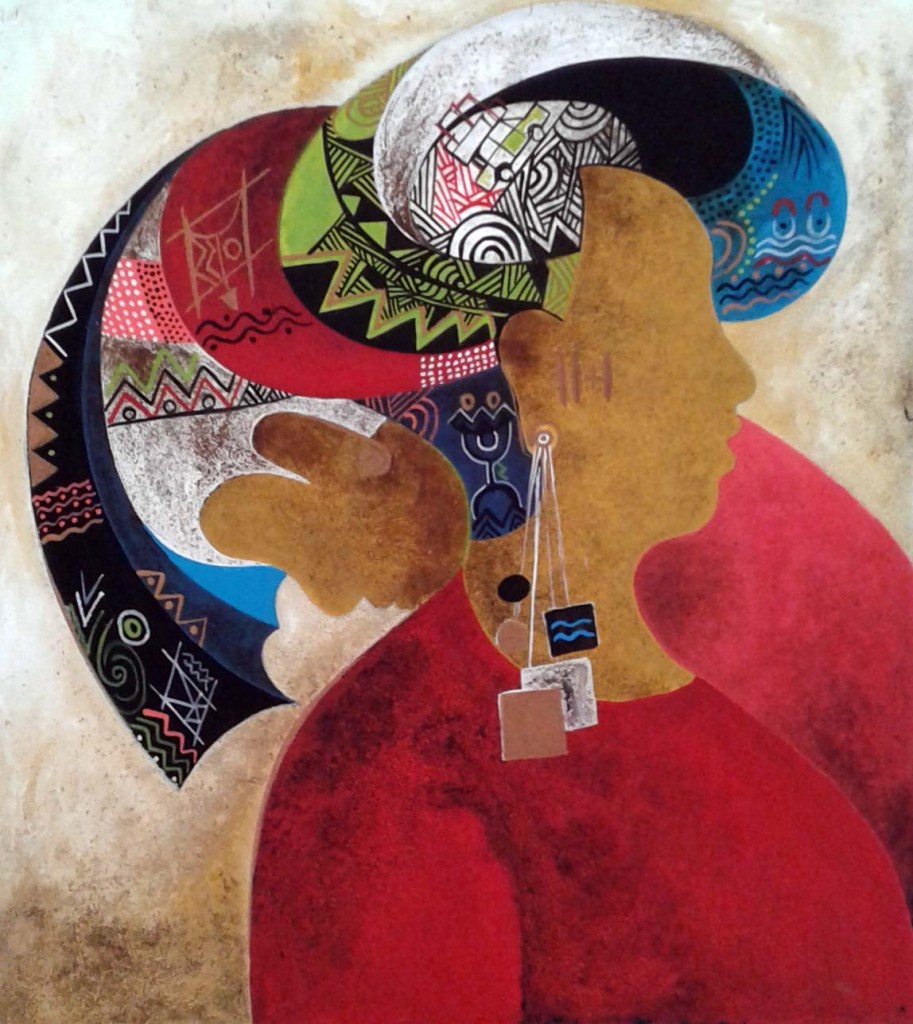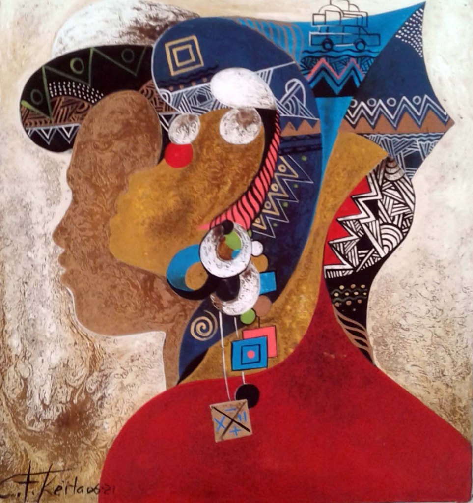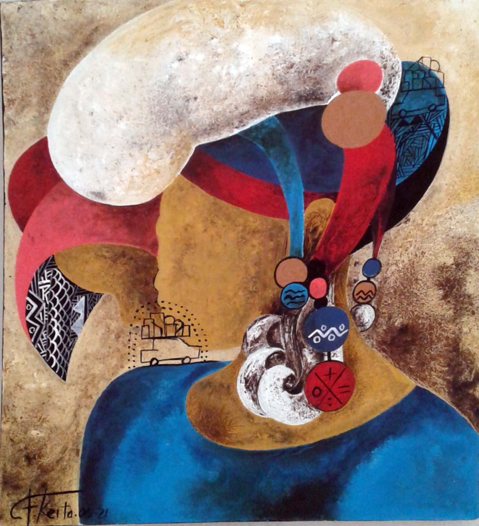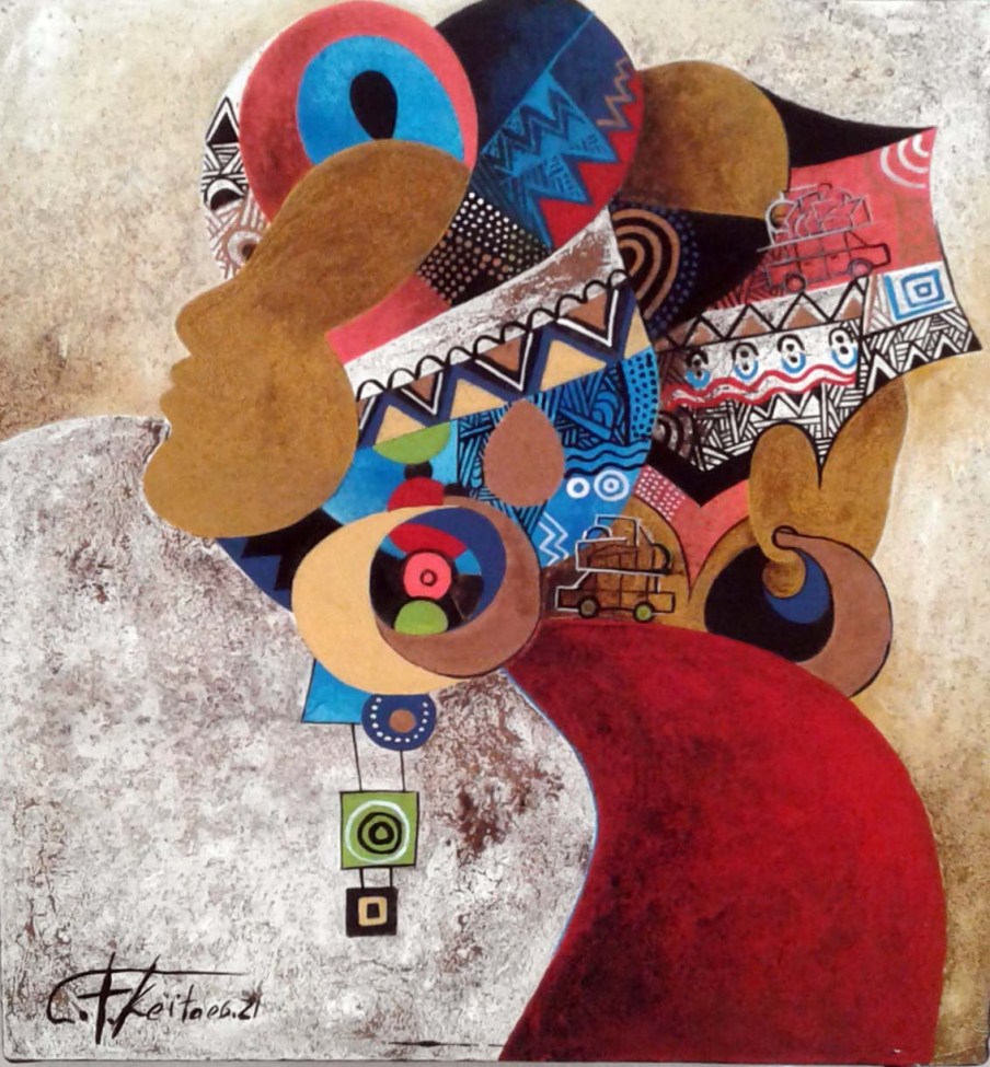 CHEIKH KEITA, acrylique sur toile, série « coiffe et parure »