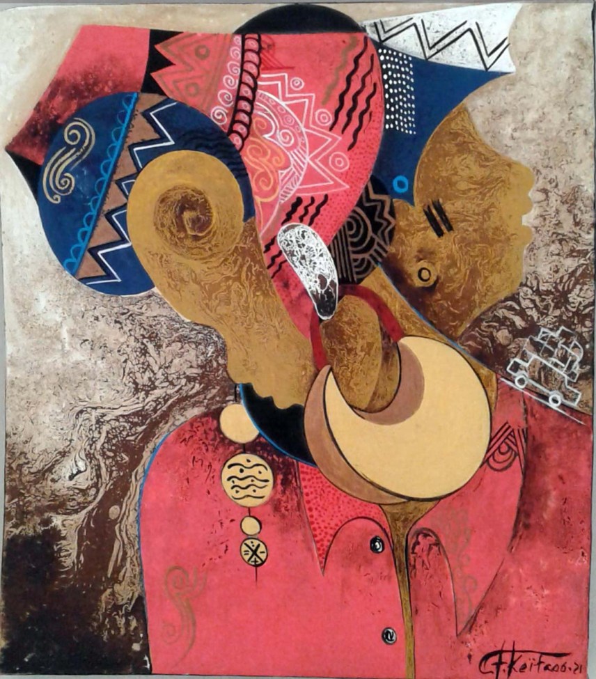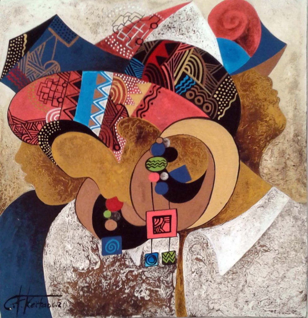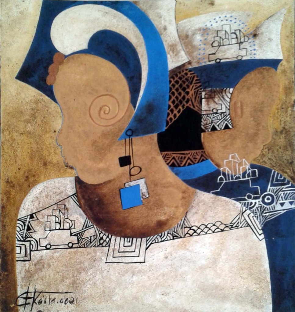 CHEIKH KEITA, acrylique sur toile, série « coiffe et parure »