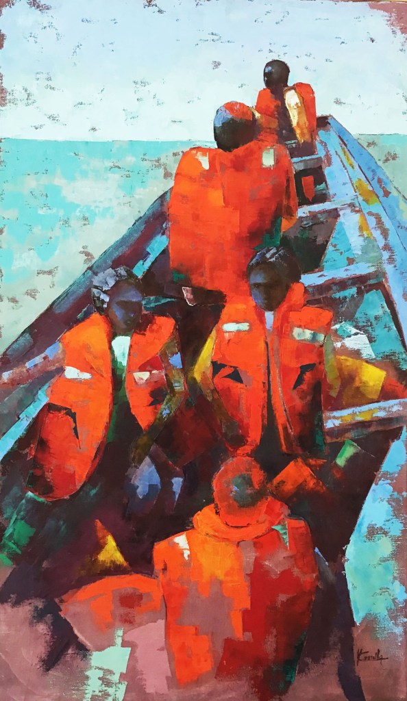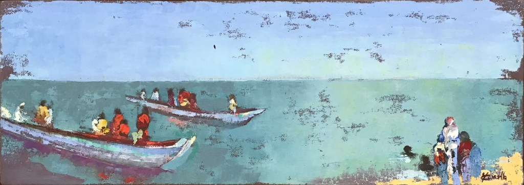« Le soleil omniprésent, les scènes de la vie quotidienne, la pêche, l’élégance des femmes, l’agitation permanente exacerbent toujours ma sensibilité. De ces scènes, je garde des impressions. J’essaie de les restituer sur ma toile où la couleur témoigne de l’aspect positif de ce pays en devenir».