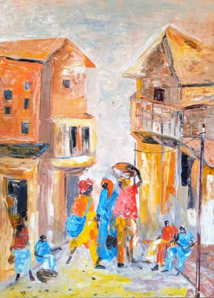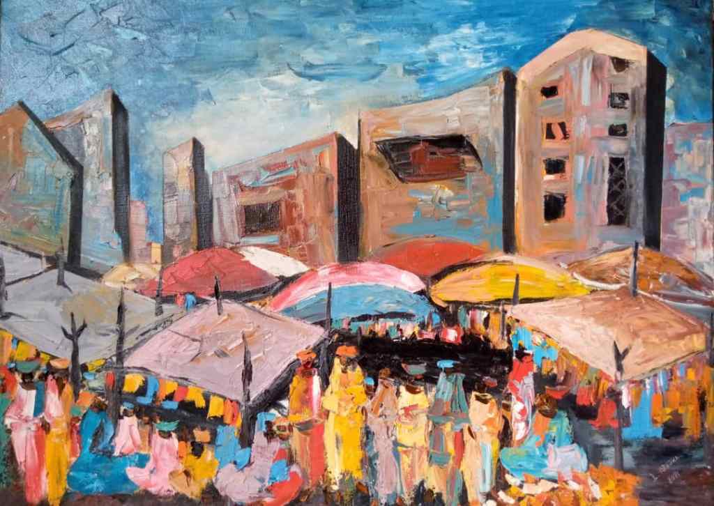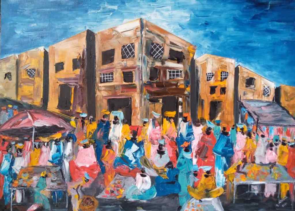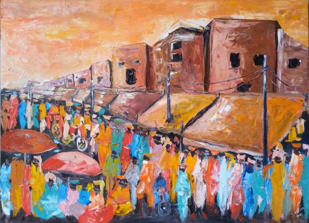 ATOUKART, huile sur toile, série « les marchés », dimensions 80 X 110