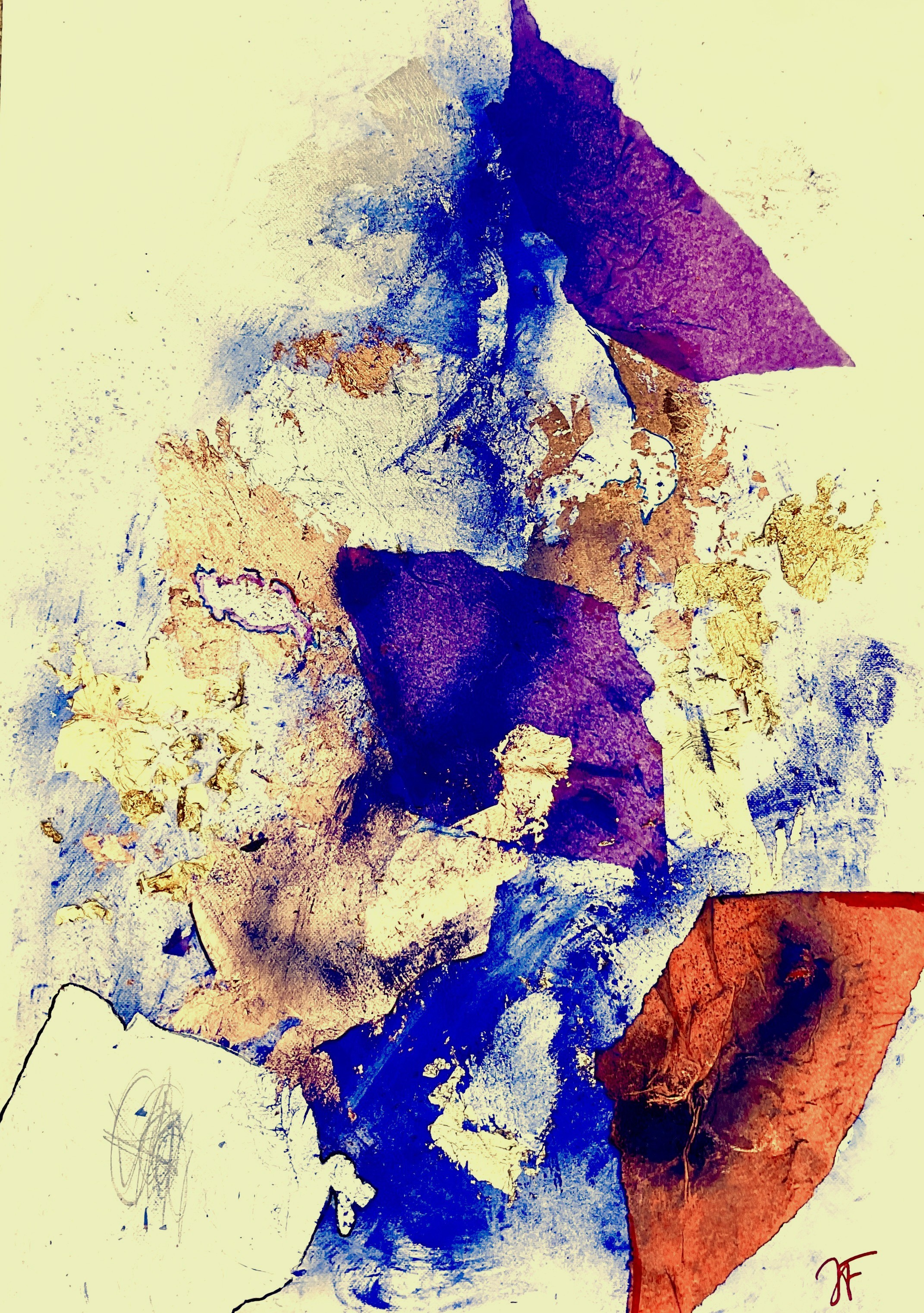 COLLAGES, PIGMENTS ET ACRYLIQUE SUR PAPIER ENTOILE.