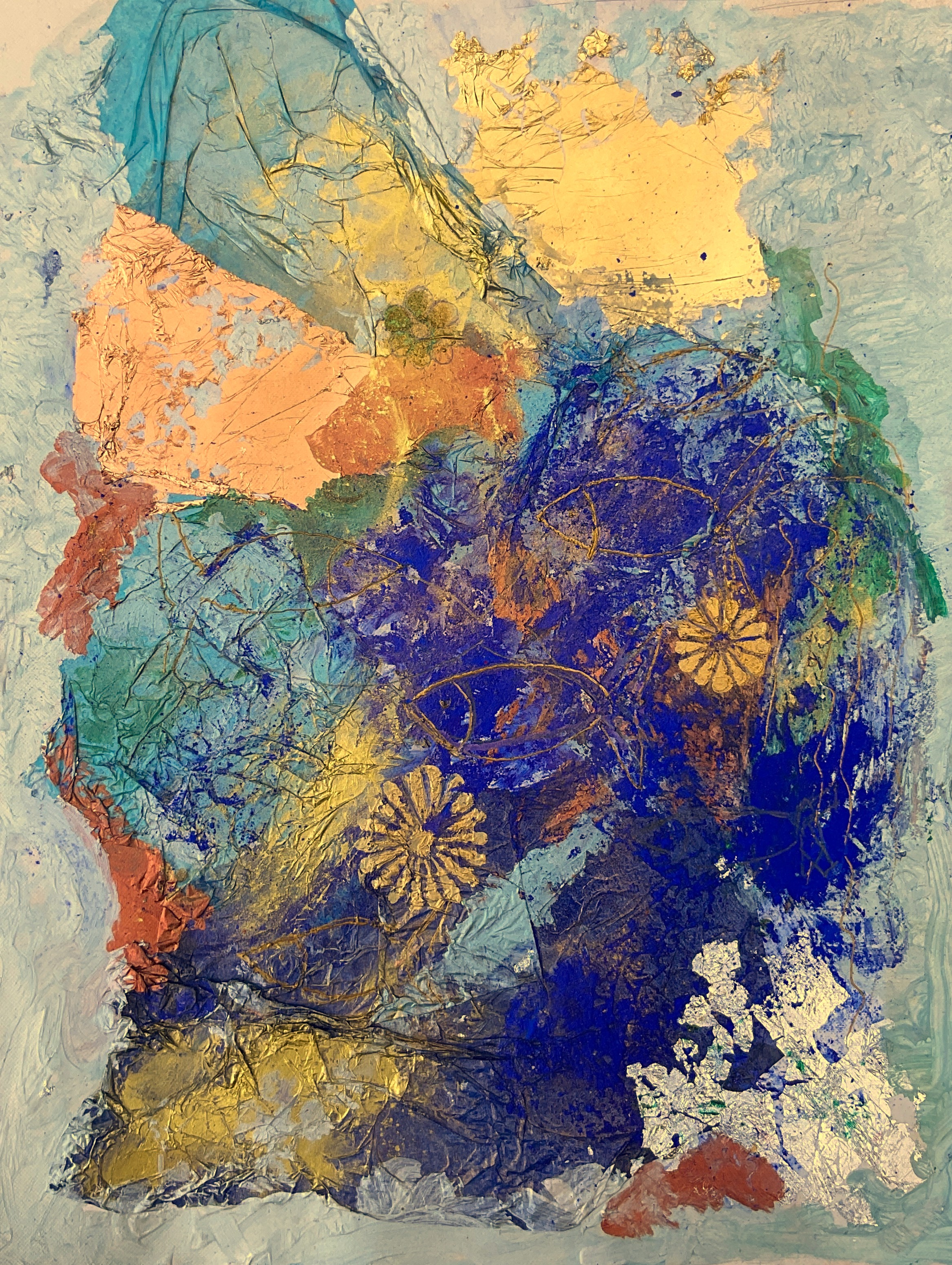 Having lived in Turkey, she developed a strong appreciation for golden and silver hues, inspired by the embroidered garments of the sultans. After more than four decades in Senegal, she draws inspiration from the ochres, ferruginous reds and warm earth tones of the continent, which resonate throughout her textured and vibrant compositions.