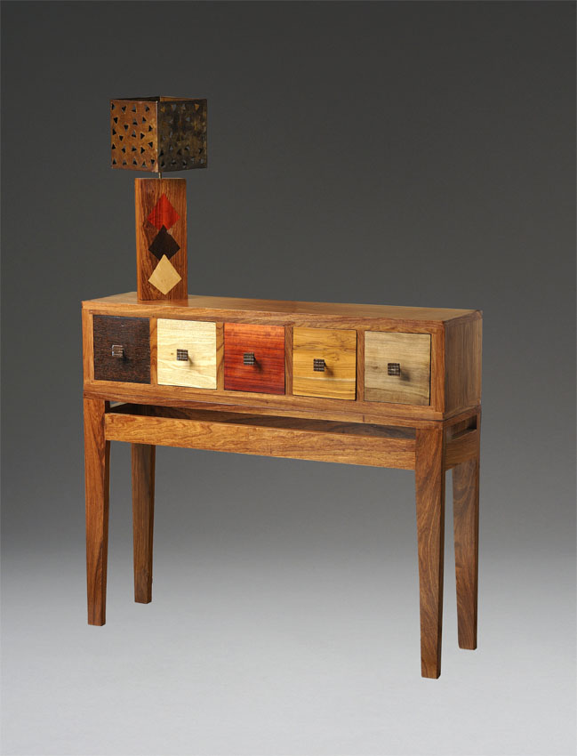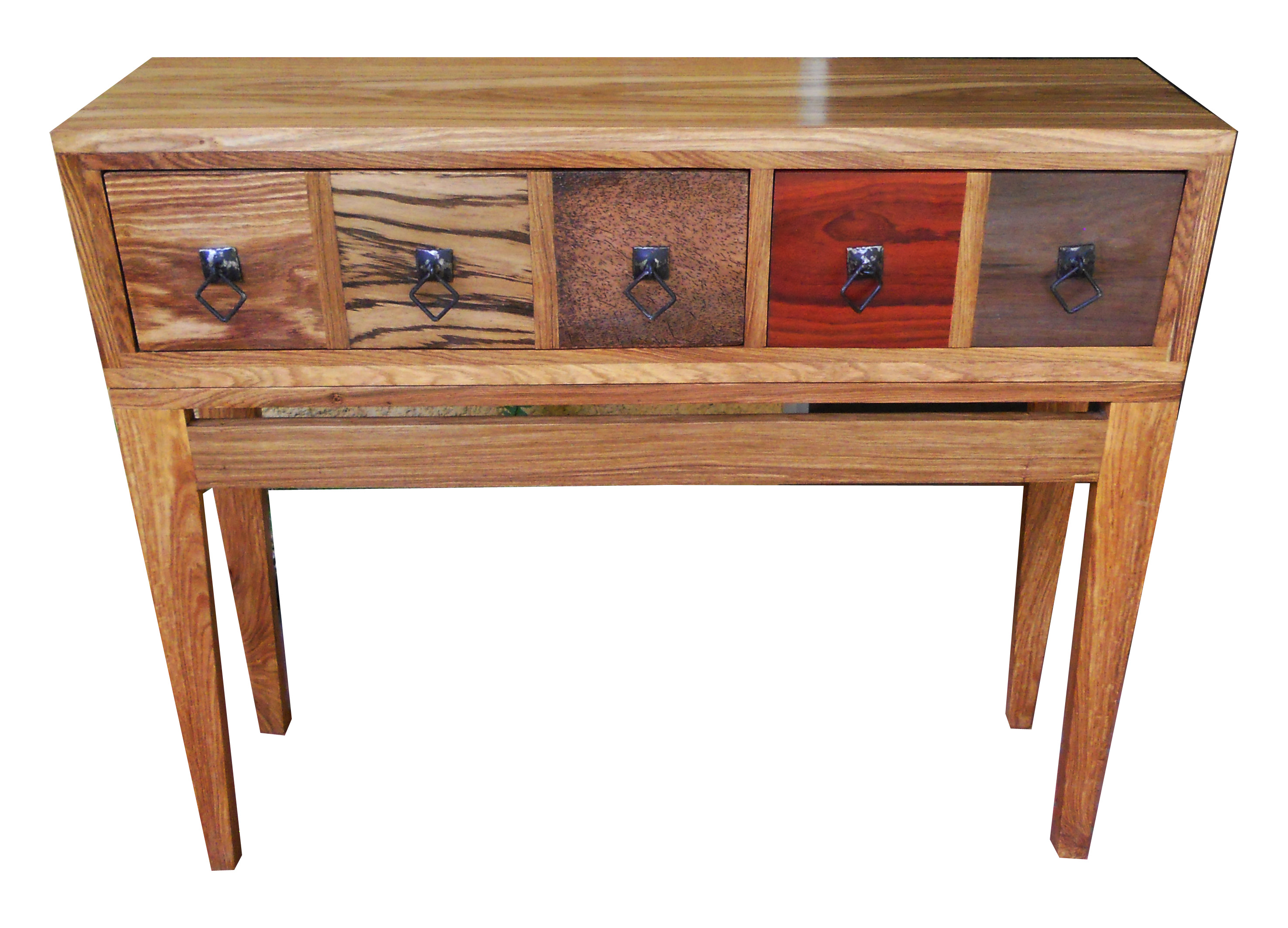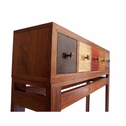 console bidew en bois bété, ébène, padouk, ronier et fraké