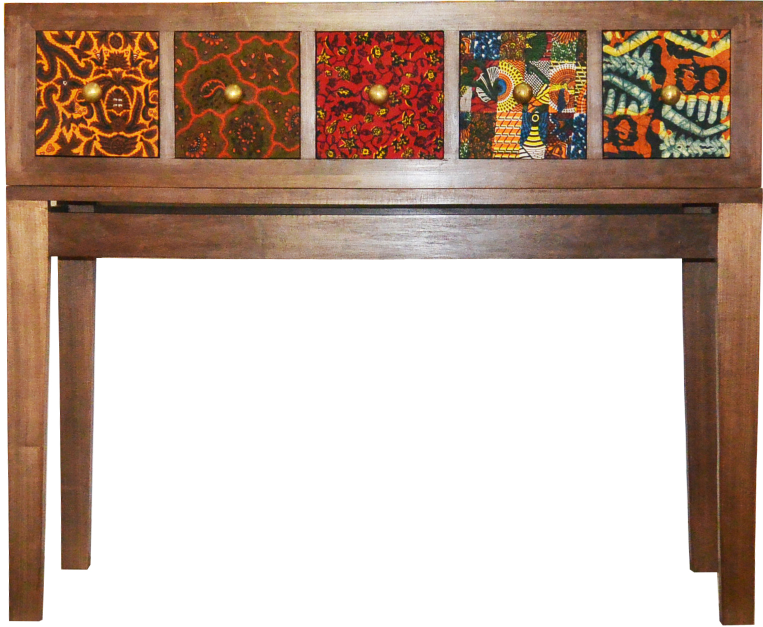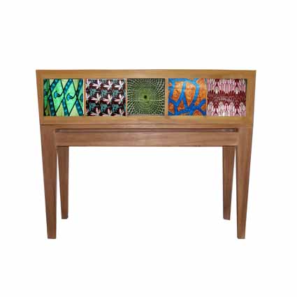 console ngali en bois bété et wax, poignées boules en bronze, l 116 x p 30 x h 97