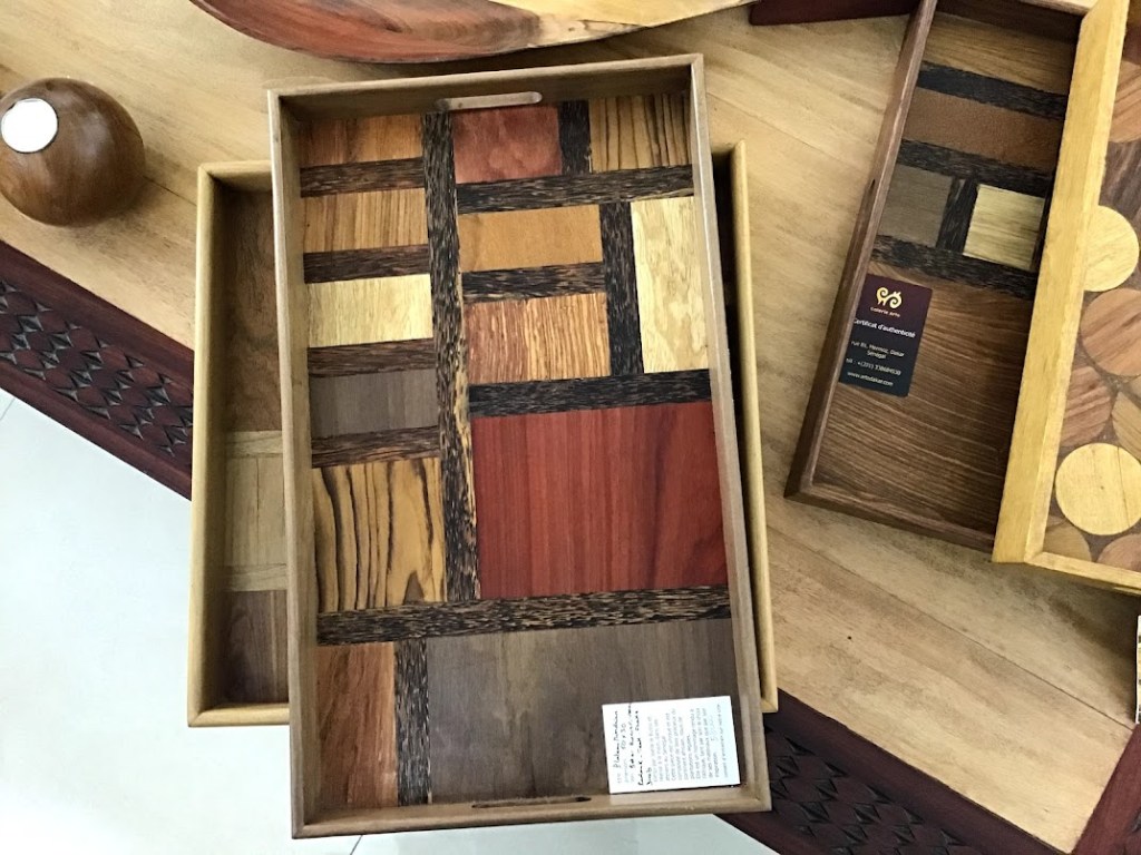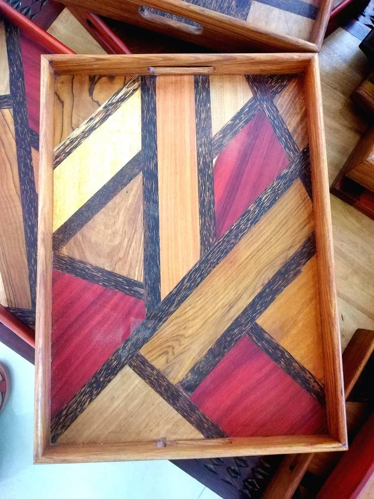 plateaux en marqueterie de bois précieux