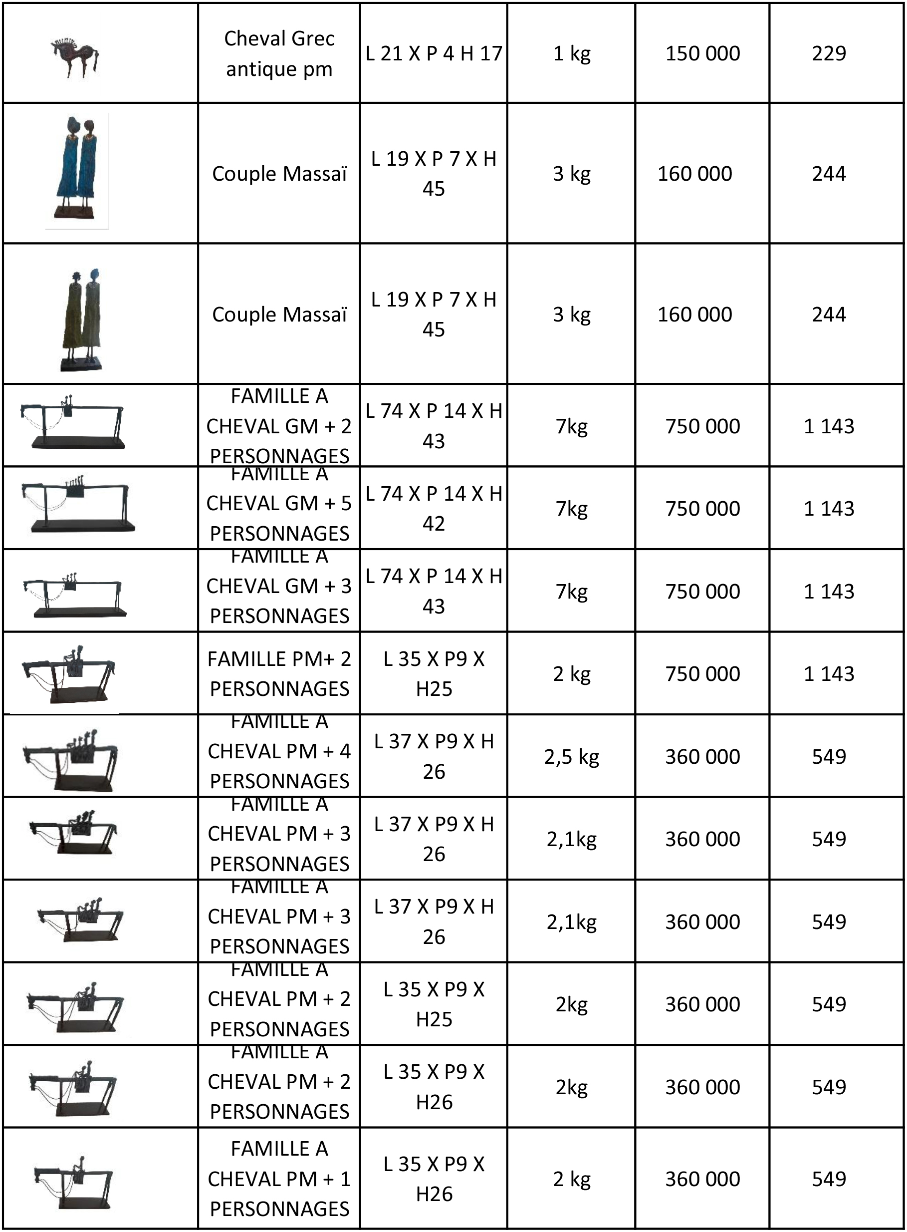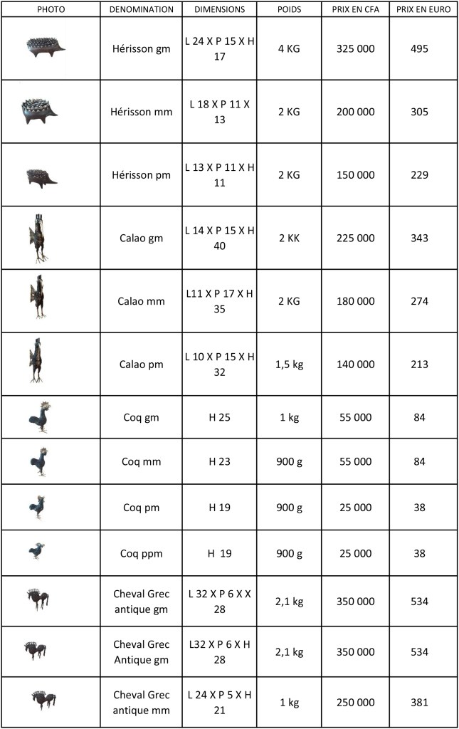 Malena : A.GANDEMA 29 x 27 x 36 8kg / 600 000FCFA soit 915 €