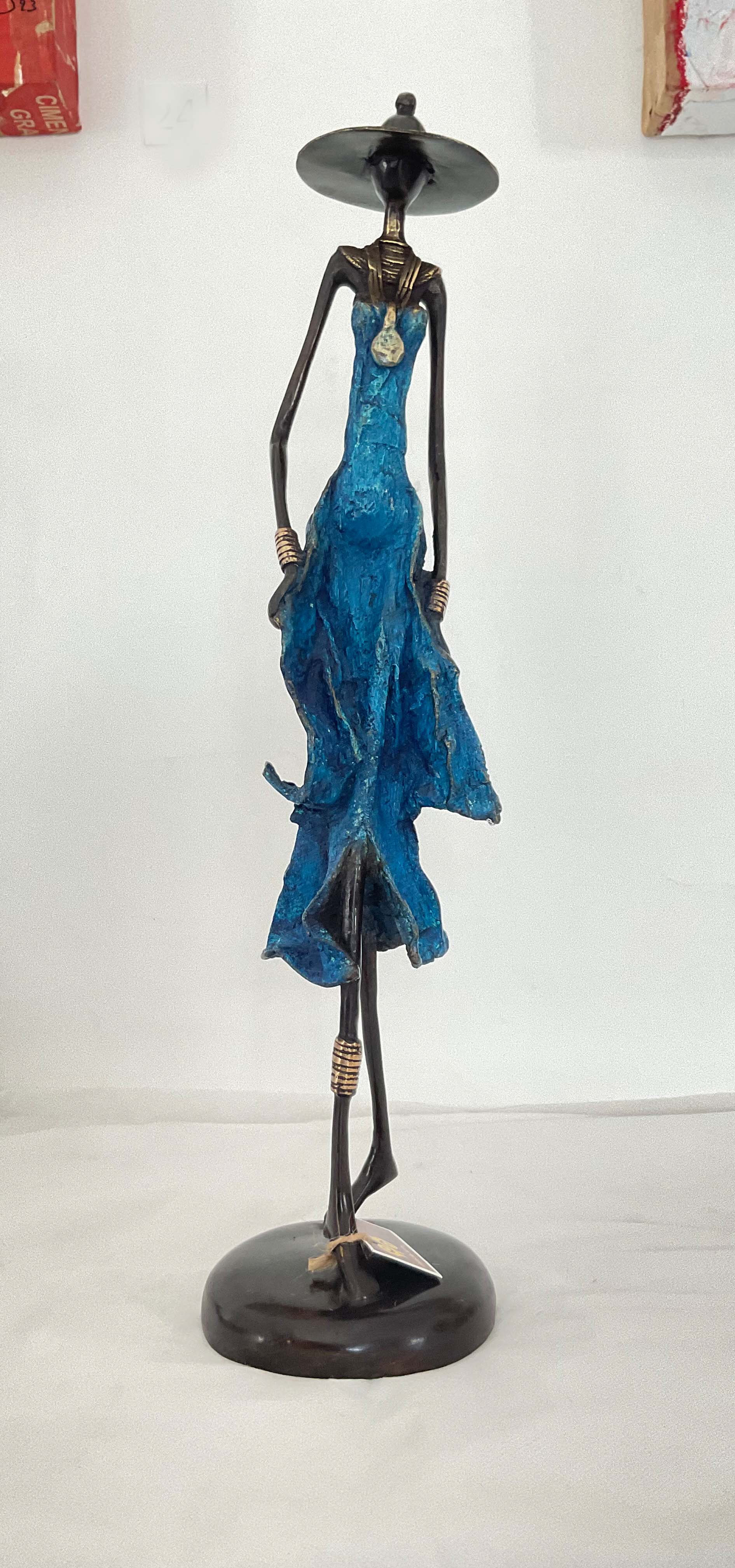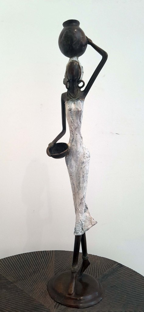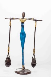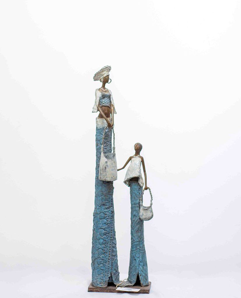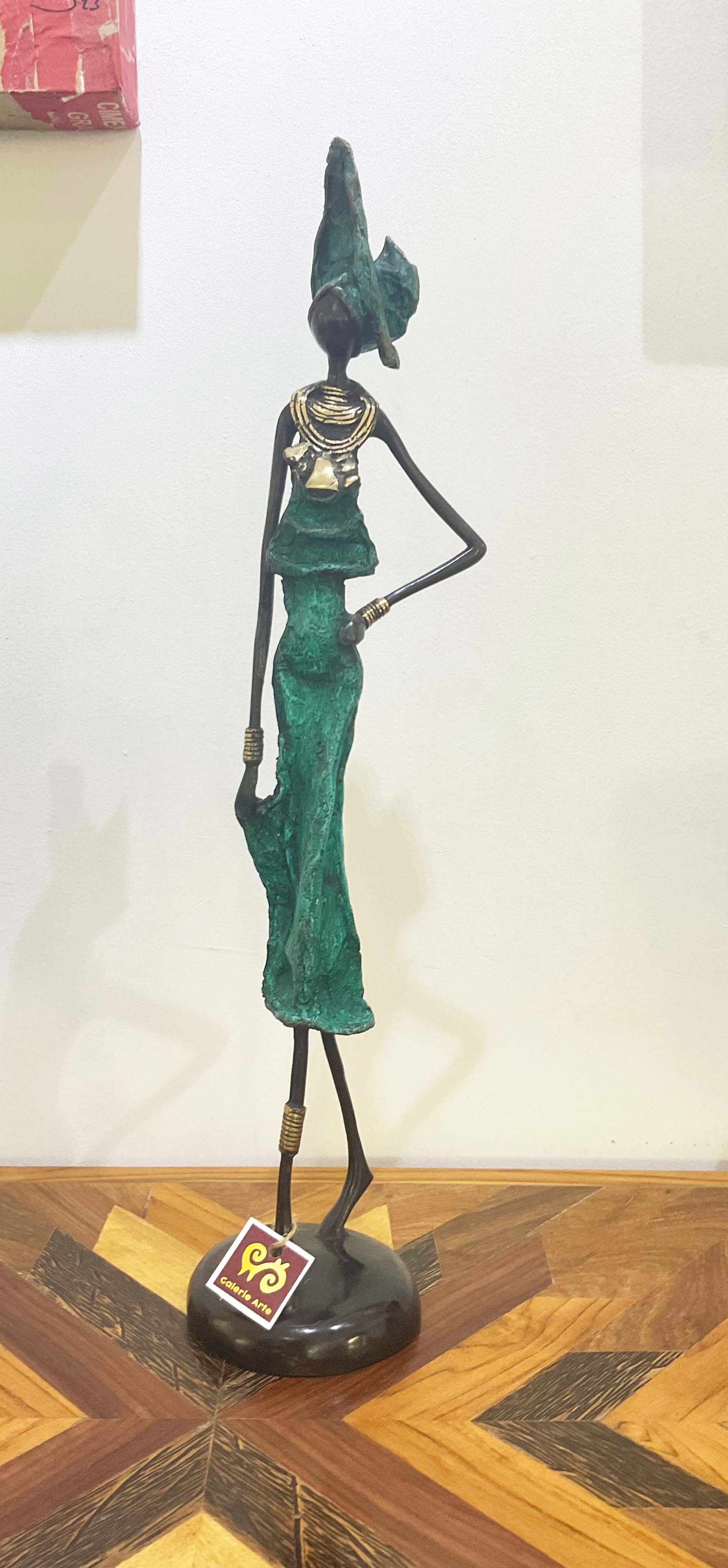 A.Gandéma est un des plus grands artistes bronziers du Burkina Faso. Ses statues reflètent la grâce féminine africaine dans toute sa splendeur. Les bronzes sont réalisées par la traditionnelle méthode de la cire perdue, ce qui fait de chaque pièce, une pièce unique. Ce sont ici la 3 -ème édition de ces statues. Les patines réalisées avec des cires ont été commandées spécialement par la Galerie Arte.