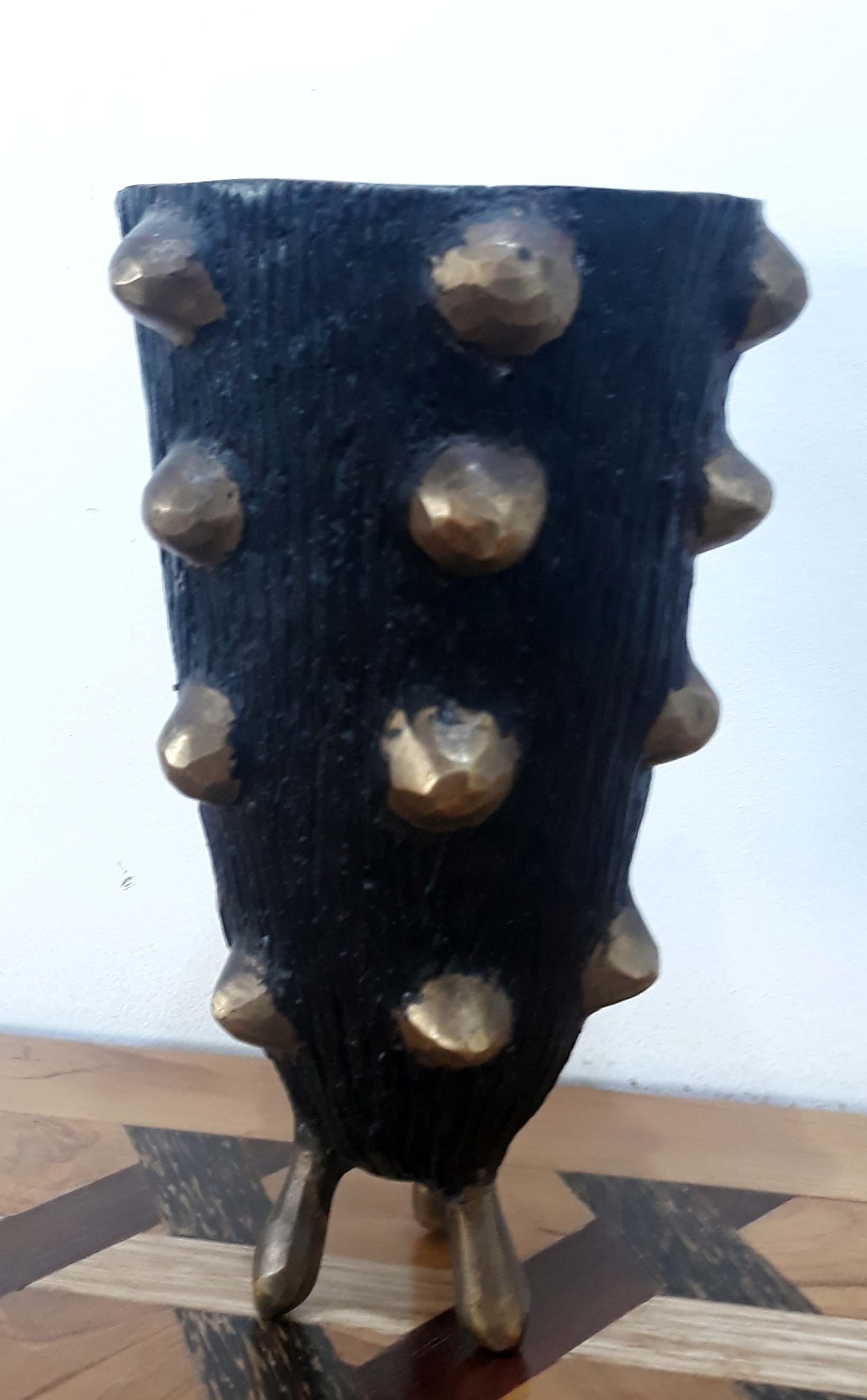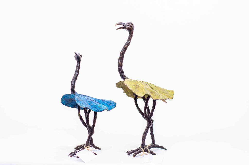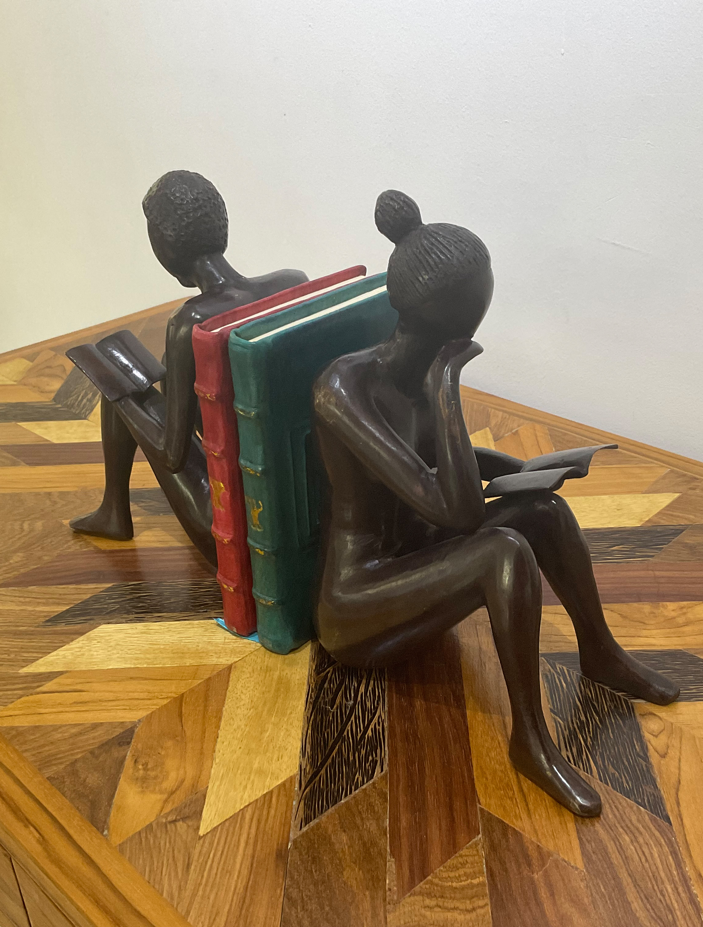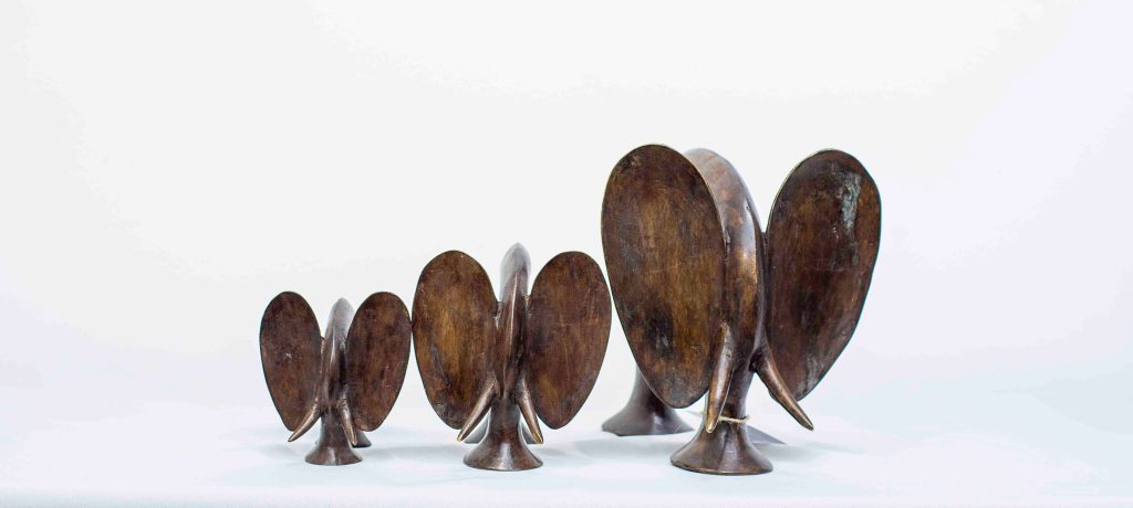 A.Gandéma est un des plus grands artistes bronziers du Burkina Faso. Ses statues reflètent la grâce féminine africaine dans toute sa splendeur. Les bronzes sont réalisées par la traditionnelle méthode de la cire perdue, ce qui fait de chaque pièce, une pièce unique. Ce sont ici la 3 -ème édition de ces statues. Les patines réalisées avec des cires ont été commandées spécialement par la Galerie Arte.