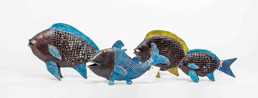 La sculpture concerne plusieurs matières, le bronze, l’argile, etc. Le bronze se définit comme un alliage de cuivre et de l’étain à forte proportion de cuivre. le cuivre est un métal importé à des fins d’usage précis auprès des cours royaux. a l’origine, le travail des fondeurs consistait à produire des parures pour les épouses des chefs, à couler les statuaires mortuaires.