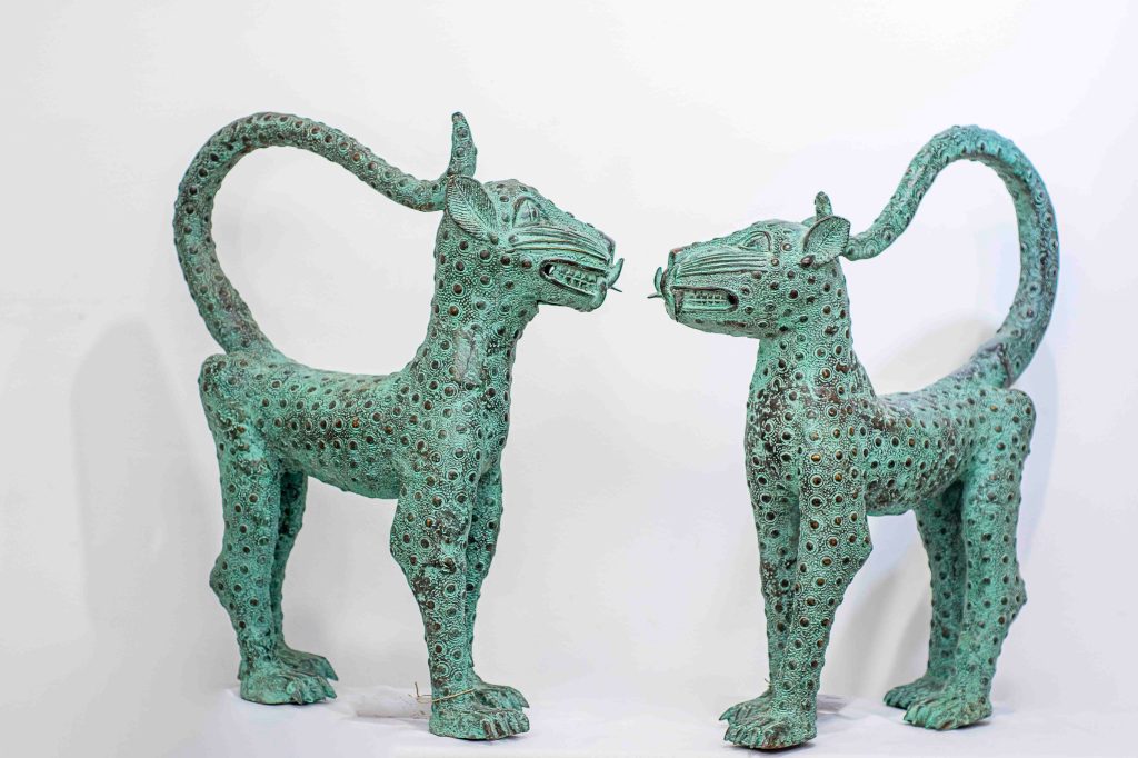 Les autres statues (panthères, guerriers etc) étaient réservées à l’usage exclusif des habitants du Palais Royal de Bénin City et, le plus souvent, placées sur des autels consacrés par chaque nouvel Oba (Roi)