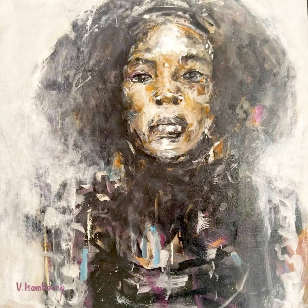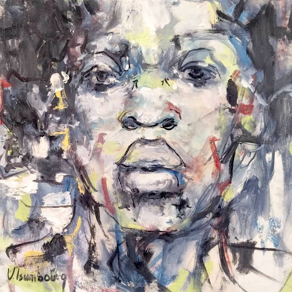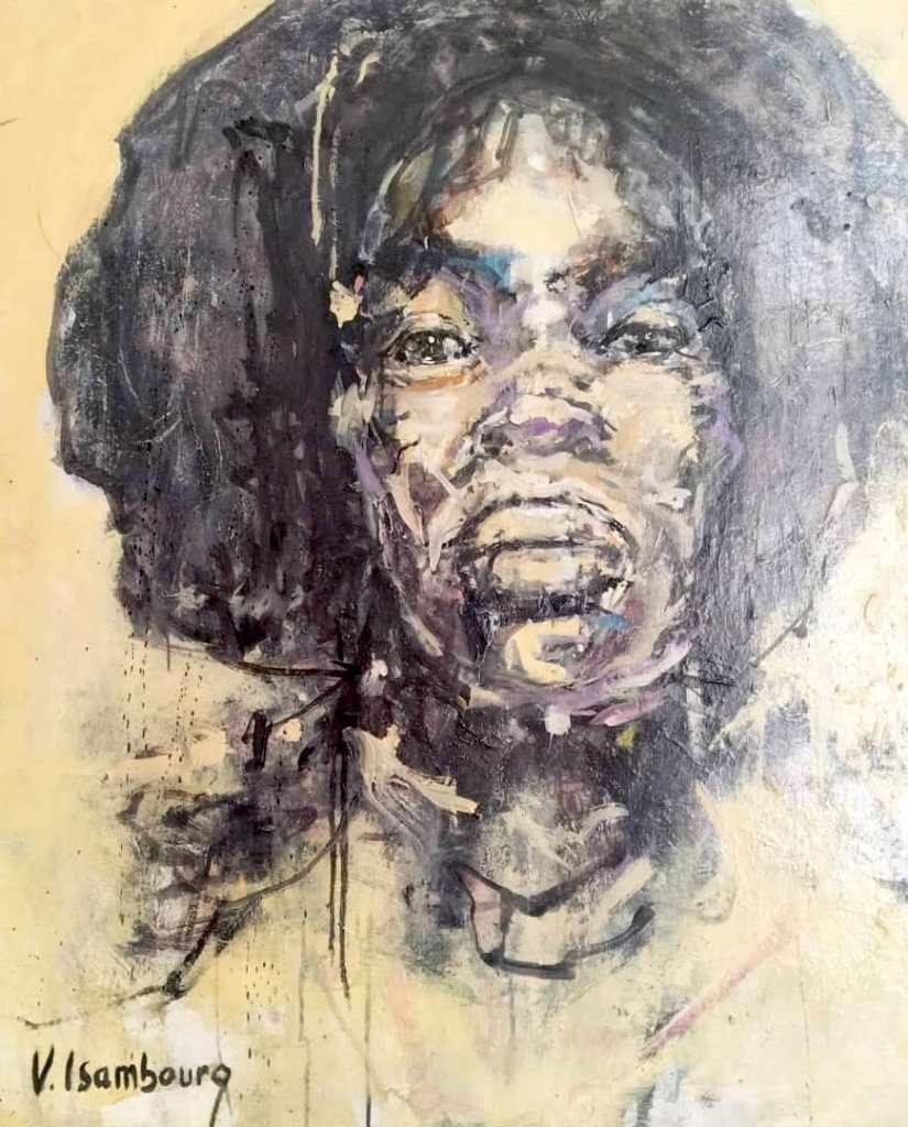 Souvent exposée en Europe et en Afrique, sa peinture est semi figurative. Il utilise pour cette exposition différents médiums pour rendre ses toiles éclatantes.