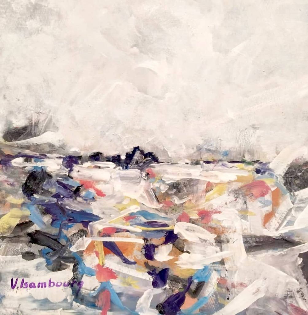 Cette nouvelle thématique magnifie sa technique ; sa palette et ses touches amples de couleurs vives, parfois raturées ou effacées sont le reflet des émotions intérieures quand l’âme touche à l’essentiel et se dépouille du matériel. Sa peinture est poétique, onirique et laisse notre esprit rêver sereinement, et glisser doucement vers une béatitude artistique.