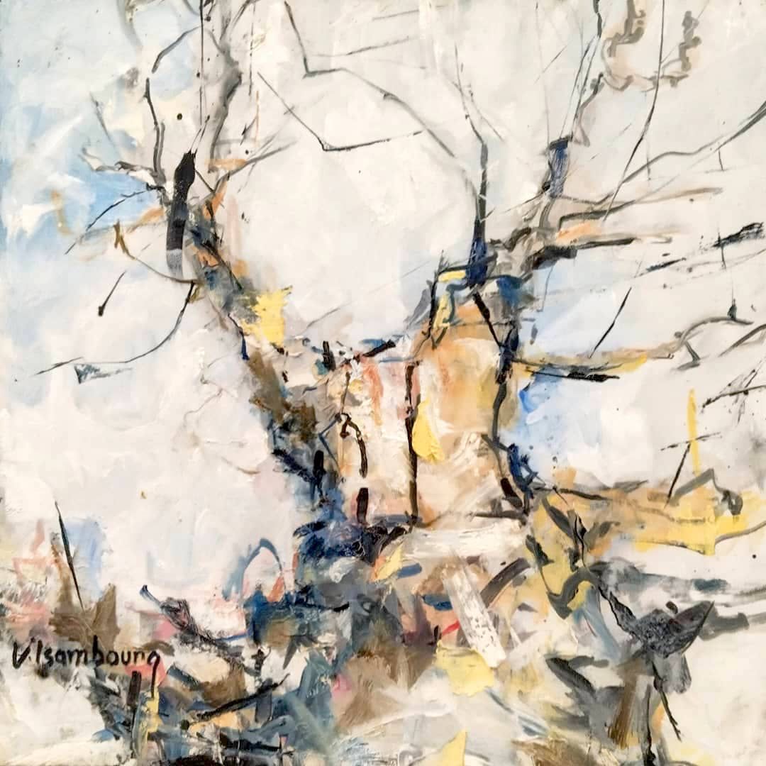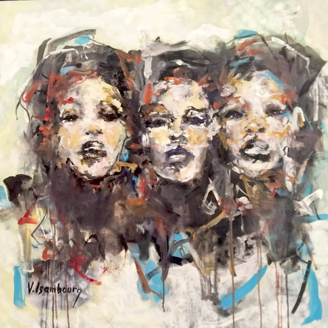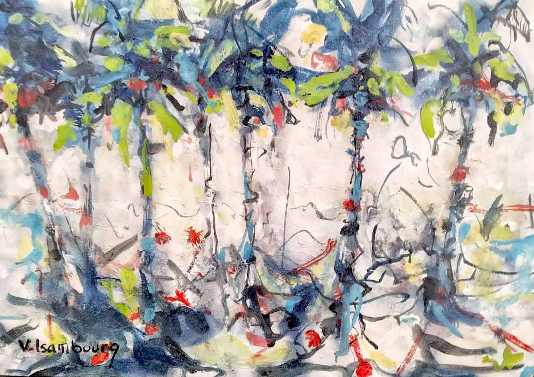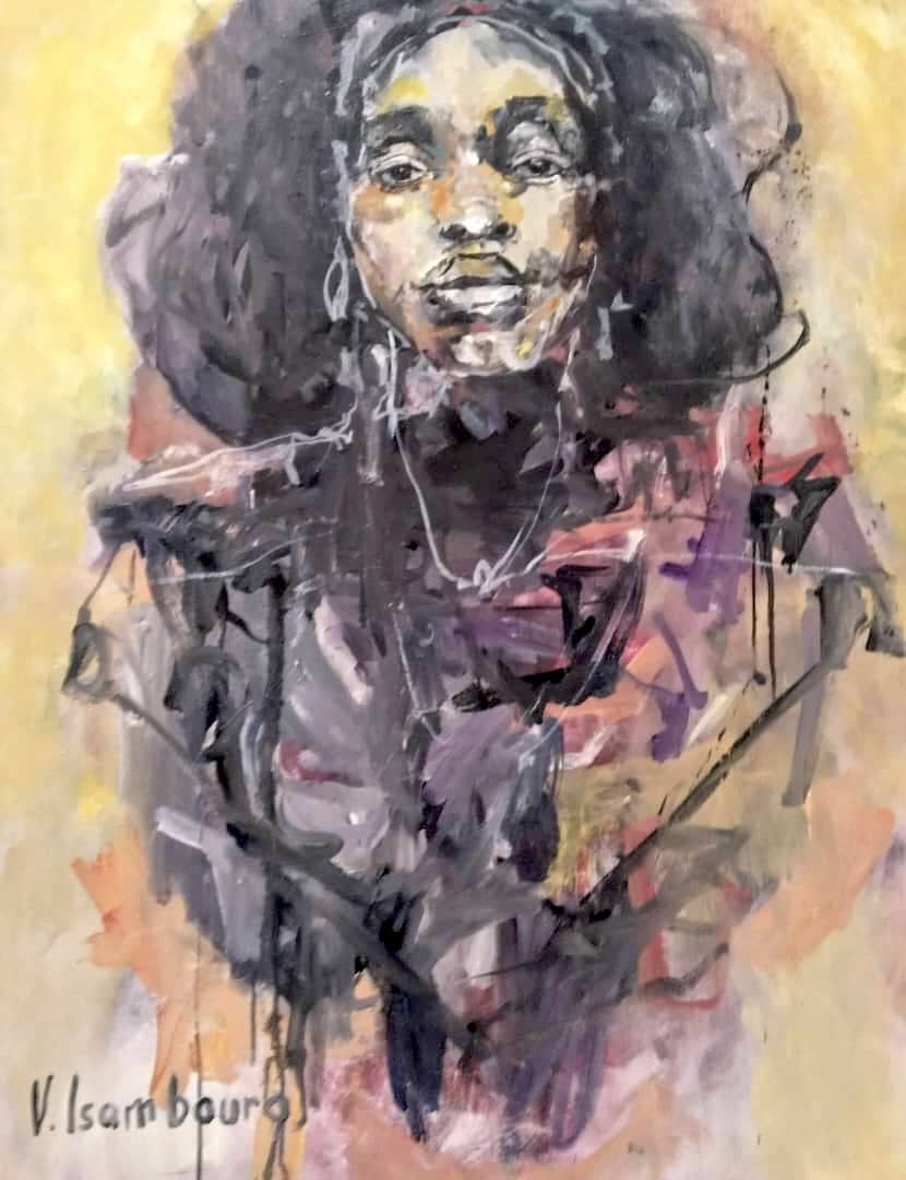 Souvent exposée en Europe et en Afrique, sa peinture est semi figurative. Il utilise pour cette exposition différents médiums pour rendre ses toiles éclatantes.