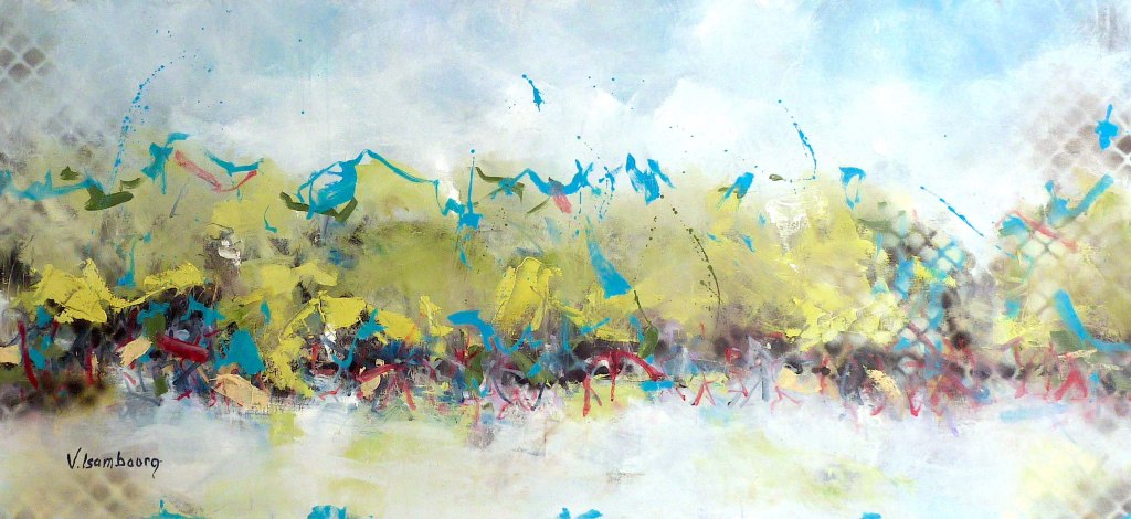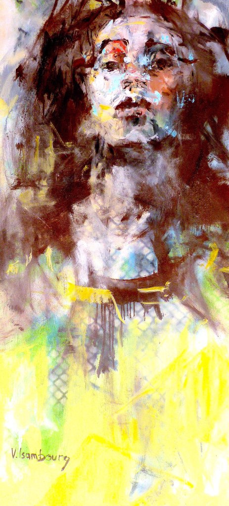 Pour la première fois, Vincent expose les paysages oniriques du Siné Saloum où il a fait une retraite artistique de plusieurs mois pour préparer cette exposition « Sables émouvants – Saloum ». Cette nouvelle thématique magnifie sa technique ; sa palette et ses touches amples de couleurs vives, parfois raturées ou effacées sont le reflet des émotions intérieures quand l’âme touche à l’essentiel et se dépouille du matériel. Se confondent et s’entremêlent sur la toile visages et paysages. Il est ainsi quelquefois difficile de les dissocier et cette symbiose sacrée nous rappelle que l’ humain est indissociable de la nature.