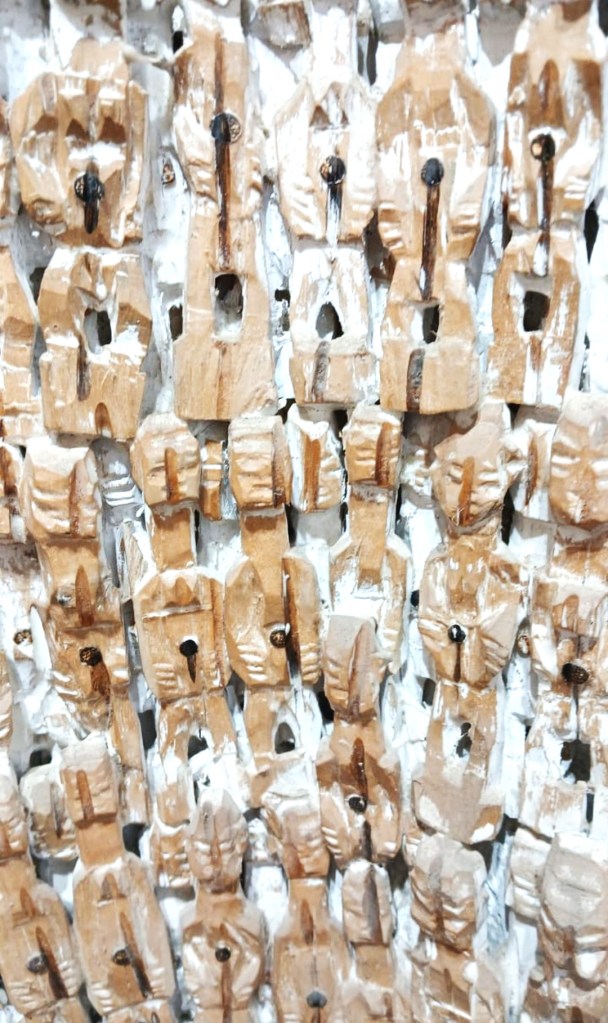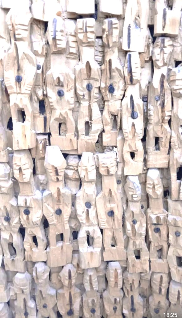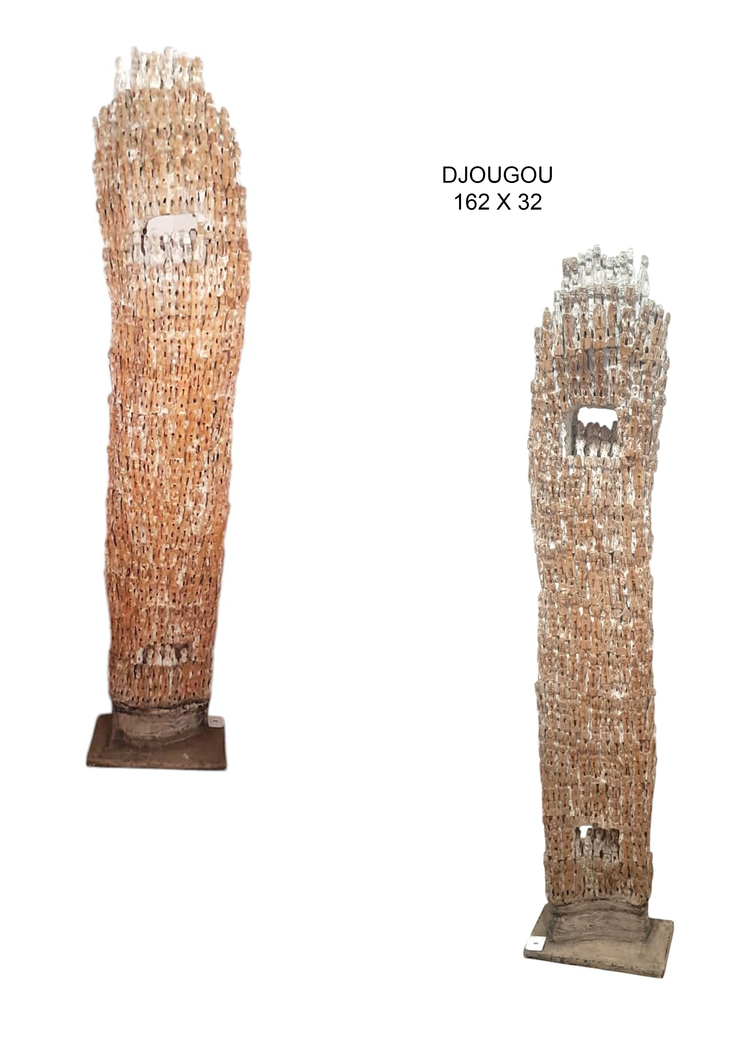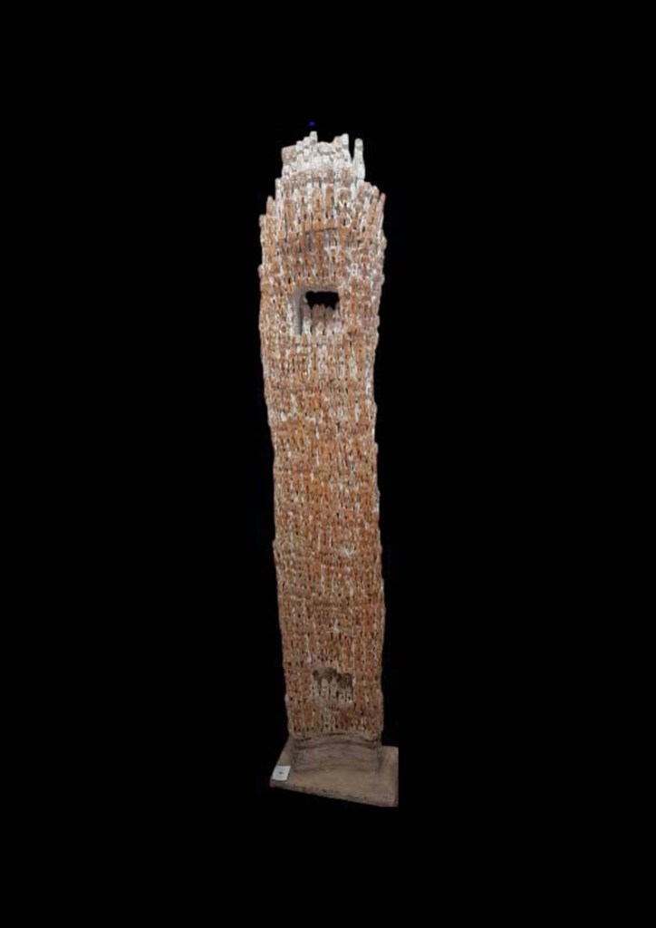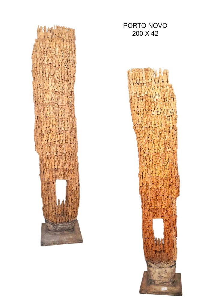 L’artiste met en avant certaines traditions qui trouvent leur origine dans la région du Bénin. Il les revisite et interprète. Il nous les fait découvrir sous une esthétique différente tout en les mettant à l’honneur avec respect. Ces amoncellements d’Ibeji aux formes élancées suscitent notre curiosité et attisent notre regard.